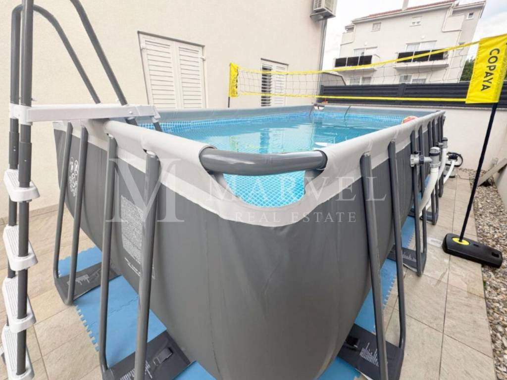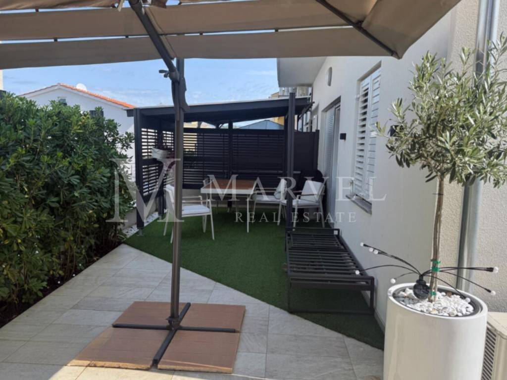 In vendita un appartamento arredato con gusto situato al piano terra di un edificio residenziale di recente costruzione, in una posizione tranquilla a Malinska, ideale per vacanze o per vivere tutto l'anno. L'appartamento dispone di 60 m di superficie abitabile interna e 100 m di spazio esterno pavimentato e sistemato. È composto da: ingresso soggiorno collegato con cucina e zona pranzo due camere da letto bagno Gli interni sono arredati con mobili su misura, con grande attenzione alla funzionalità, alla qualità e al comfort. Il soggiorno presenta soffitti alti e dettagli architettonici che creano una sensazione di spazio e luminosità. Un elemento molto particolare dell'appartamento è una rete relax integrata in una struttura in acciaio, che crea un angolo unico e molto confortevole per il riposo. La camera dei bambini è progettata con soluzioni intelligenti come letto a castello, comodo divano e armadio a muro, mentre nell'appartamento si trova anche un ampio armadio a muro con illuminazione ambientale regolabile. L'appartamento è completamente arredato e dotato di attrezzature di qualità ed è stato completamente ristrutturato cinque anni fa. Inclusi nella proprietà anche due posti auto esterni. Per maggiori informazioni e visite contattateci al +385 91 902 1362 oppure info@marvel-nekretnine.hr