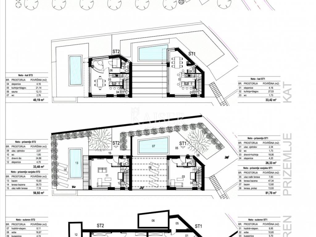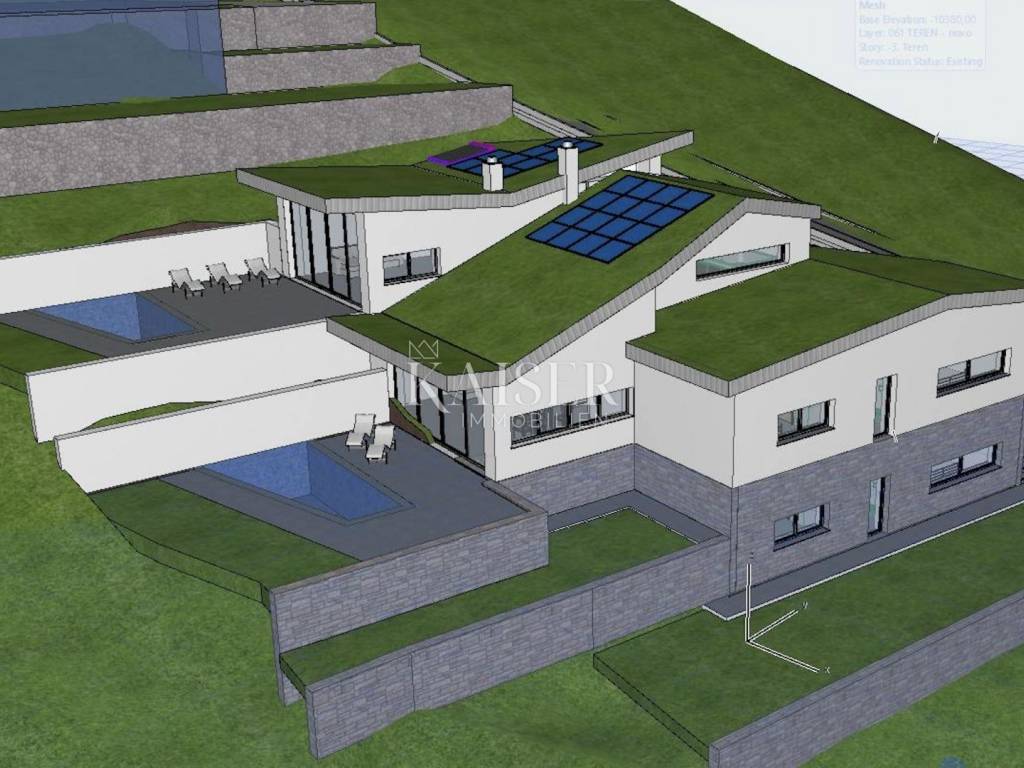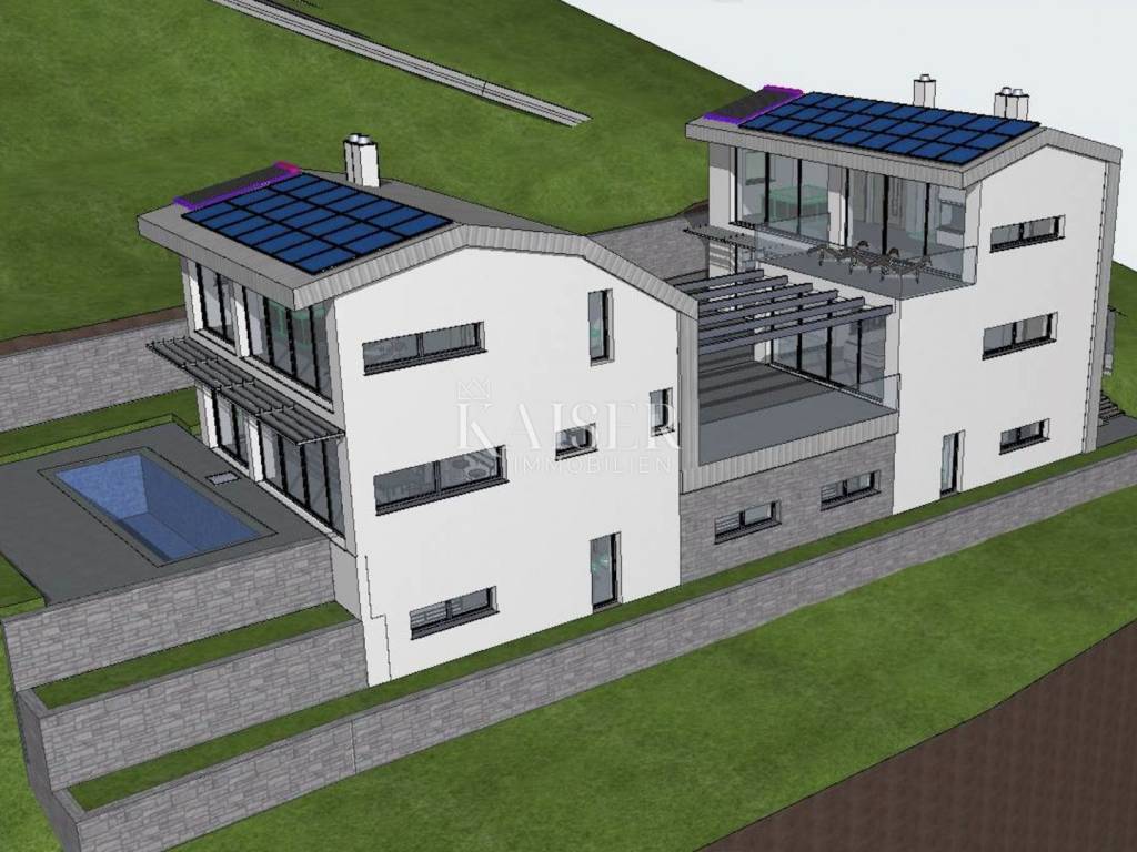 Kaiser Immobilien presenta un terreno edificabile a Lovran, situato a soli 100 metri dal mare. È stata presentata la documentazione per ottenere il permesso di costruire per la realizzazione di tre villette bifamiliari con piscina, per un totale di 6 unità abitative.