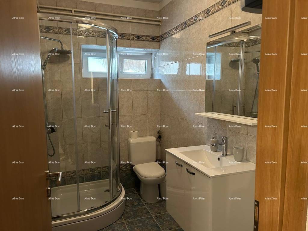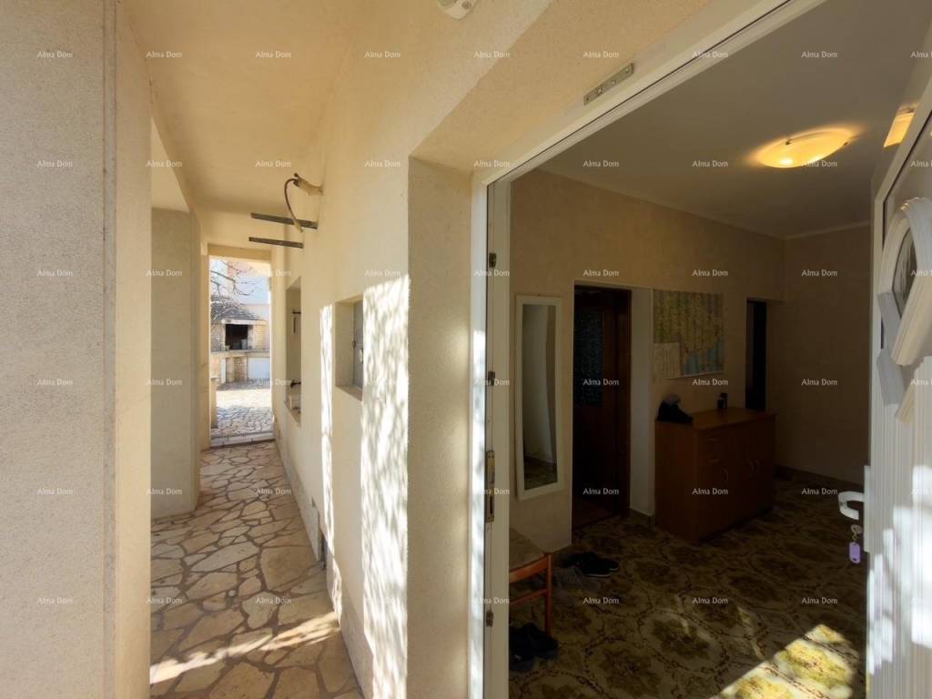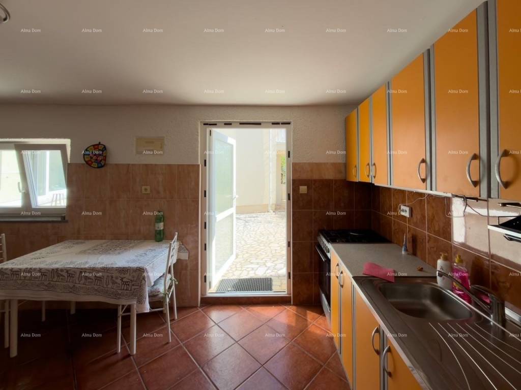 In vendita una casa completamente arredata e attrezzata, con garage, grande terrazza e annesso su un terreno di 368 m. Superficie totale della casa 353 m, cortile 133 m, garage 21 m, annesso 43 m.
