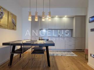 The kitchen is modernly decorated and fully equipped, including an oven and dishwasher, while the dining room has an elegant dining table. There is also an outdoor table on the balcony, ideal for enjoying meals or relaxing.