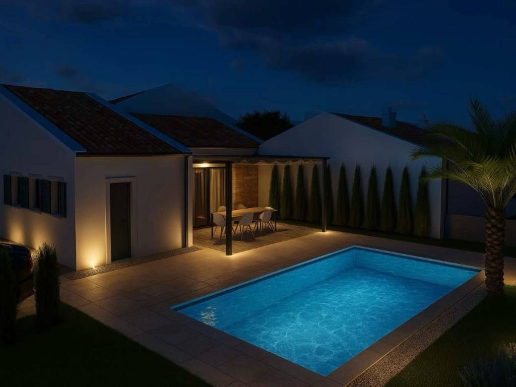 Il punto di forza è la piscina privata di 32 m², perfetta per godersi il clima mediterraneo e aumentare il potenziale di affitto. Lo spazio esterno offre un ambiente ideale per il relax, con posto auto incluso.