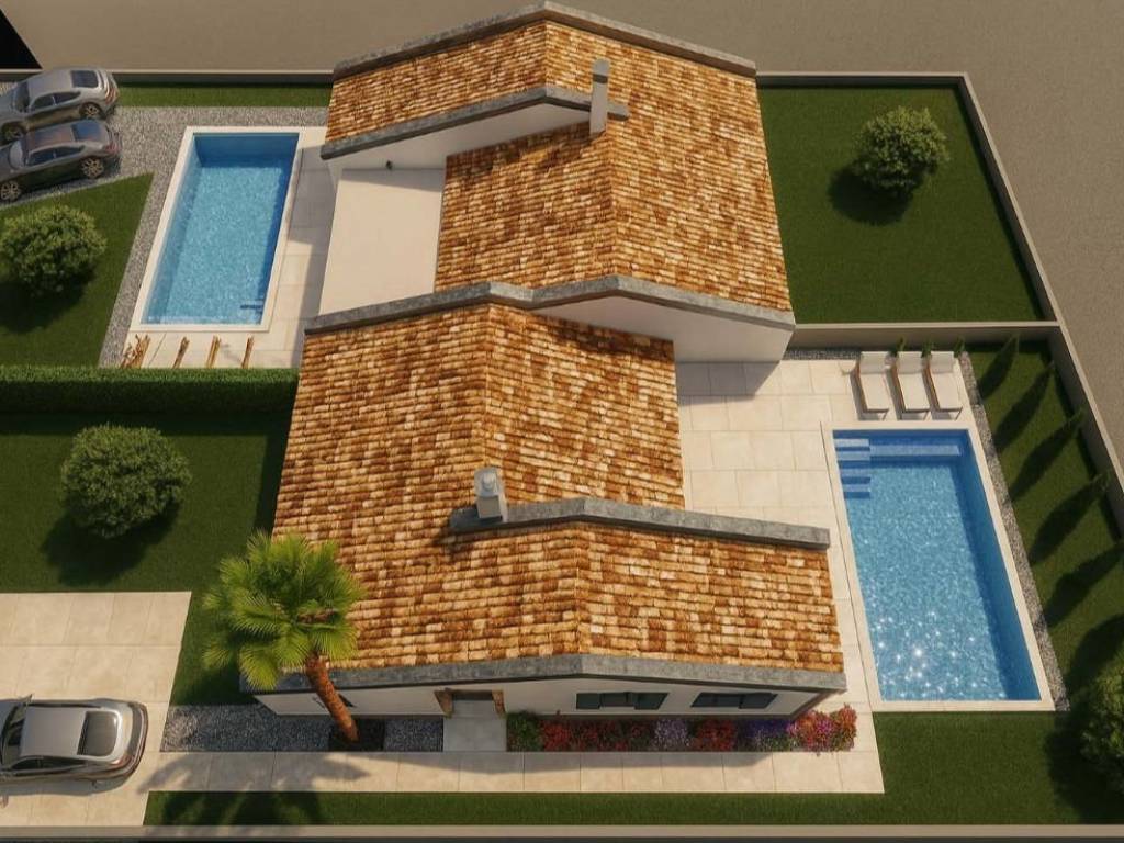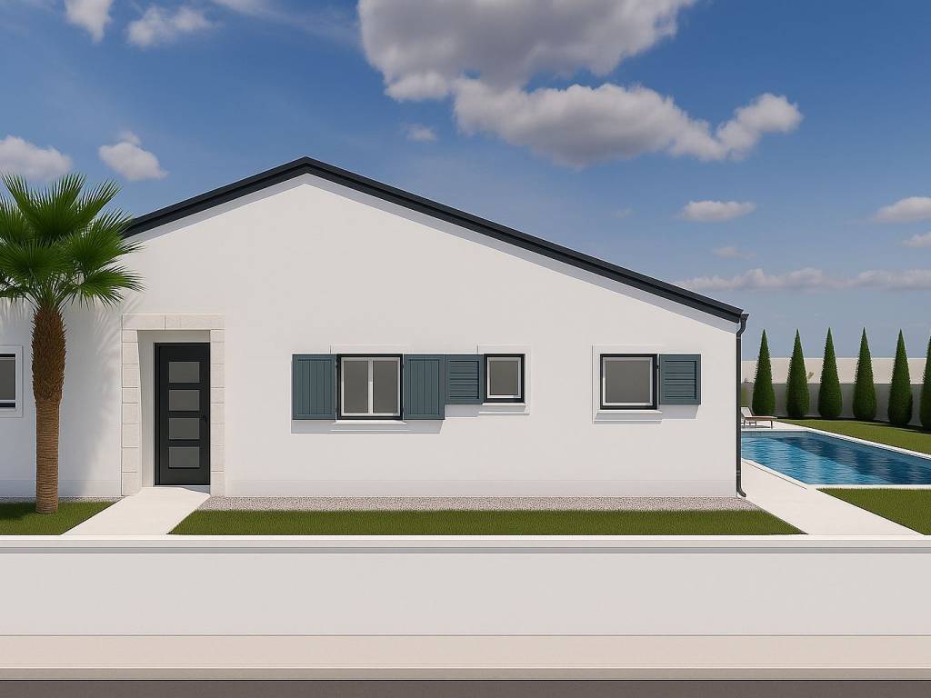 Situata in una posizione tranquilla ai margini di un’area residenziale vicino a Kaštelir, questa moderna casa di nuova costruzione su un unico livello offre privacy, comfort e un valore aggiunto – una piscina privata.
