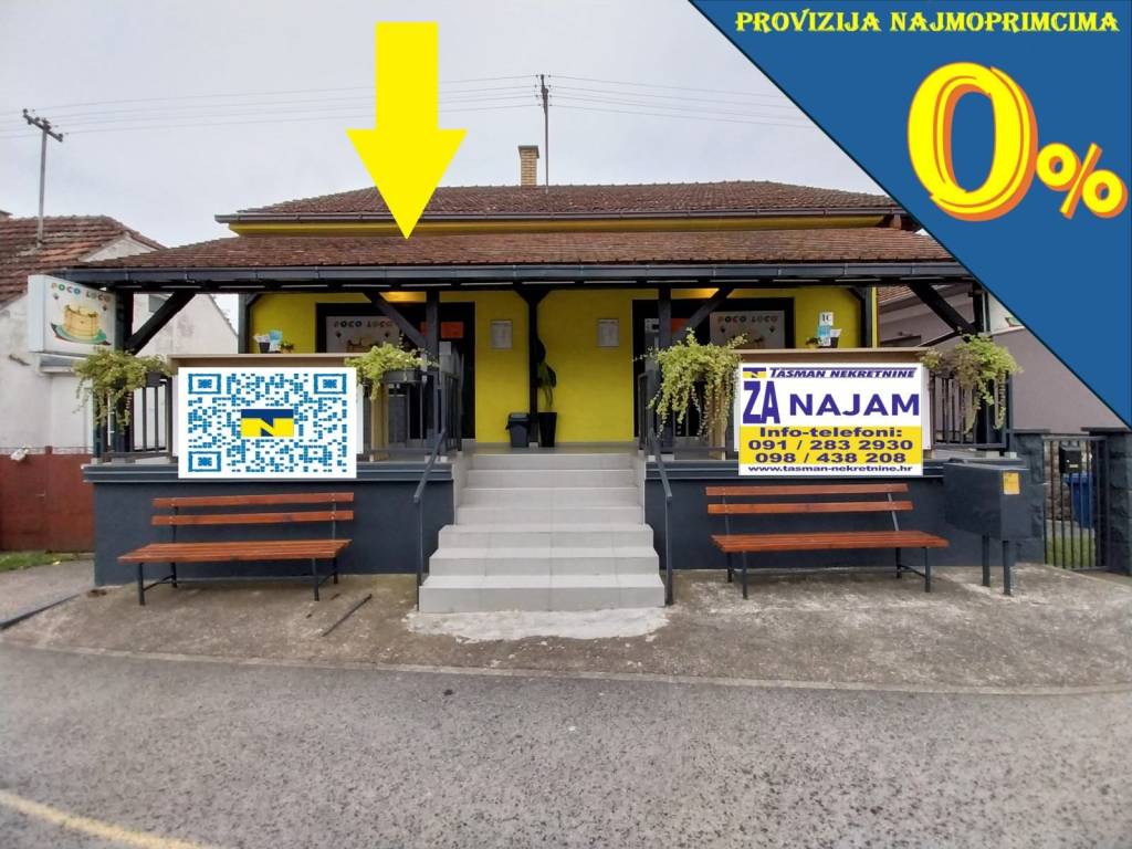 super prilika!! nudimo za zakup!! visokofrekventna lokacija!! čepin!! osječka 4c!! lokal površine 50m2!! uredno stanje!! grijanje na struju/klima uređaj!! mjesečni zakup/najam 500€+režije!! lokal na atraktivnoj visokofrekventnoj lokaciji u čepinu, osječka ulica br.4c. lokal se nakazi u prizemlju stambeno poslovne zgrade. poslovni prostor ima površinu od 50m2. lokal se sastoji iz prostora za goste, prostorije za skladište/ured, hodnika i sanitarnog čvora. grijanje u prostoru je na struju preko klima uređaja. - atraktivna poslovna prilika! - visokofrekventna lokacija! - u urednom stanju! - neposredna blizina gradskog prijevoza! - dokumentacija o vlasništvu je uredna! - detaljniji slikovni i tekstualni opis, te uvid u fotografije, raspored i položaj prostorija možete dobiti dolaskom u naš ured trg slobode 8, osijek! najam i informacije: 031/200-742 098/438-208 091/283-2930 tasmannekretnine@gmail.com više ugostiteljskih prostora za najam na www.tasman-nekretnine.hr
