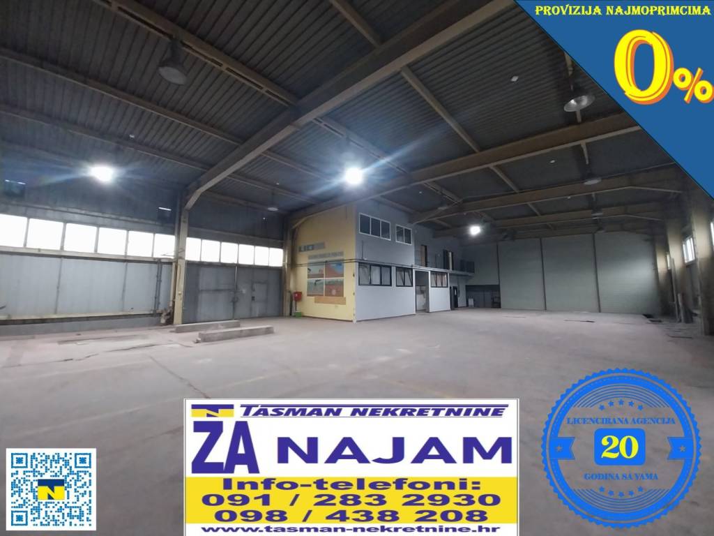povoljno!! poslovna hala za zakup površine 575m2= 2.875€+pdv/mjesečno!! kolni ulaz širina 3,6m, visina 5m!! struja 11okw!! novi grad!! blizina obilaznice!! parking!! poslovna hala sa kolnim ulazom površine 575m2. hala ima jedan veliki kolni ulaza za teretna vozila širine 3,6m i visine 5m. visina u hali 7,00m. hala je čvrste gradnje, betonski pod. objekat ima kolni prilaz i ulaz u veći dvorišni prostor koji dopušta nesmetanu manipulaciju, te vlastiti ulični parking prostor za veći broj vozila. -cijena zakupa 2.875 €+pdv+režije -mogućnost zakupa ureda od 12m2, cijena po dogovoru! - pogodno za razne poslovne djelatnosti! - neposredna blizina osječke obilaznice! - neposredna blizina centra donjeg grada! - visoko frekventna lokacija! - neposredna blizina tržnice, trgovačkog centra! - blizina gradskog prijevoza! - neposredna blizina bolnice! - veliko dvorište i ulični parking 300m2! - pogodno za sve trgovačke i proizvodne djelatnosti! - dokumentacija o vlasništvu je uredna! -detaljniji slikovni i tekstualni opis možete dobiti dolaskom u naš ured trg slobode 8, osijek! zakup i informacije : 031/200-742 098/438-208 091/283-2930 092/238-6424 ksabic@tasman-nekretnine.hr više nekretnina na www.tasman-nekretnine.hr