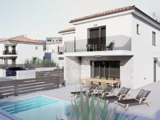 A Malinska, sull’isola di Krk, è in vendita una moderna casa bifamiliare in costruzione, con completamento previsto per l’estate 2027. Questa proprietà sull’isola di Krk, con una superficie netta totale di 110 m², si sviluppa su due livelli – piano terra e primo piano.