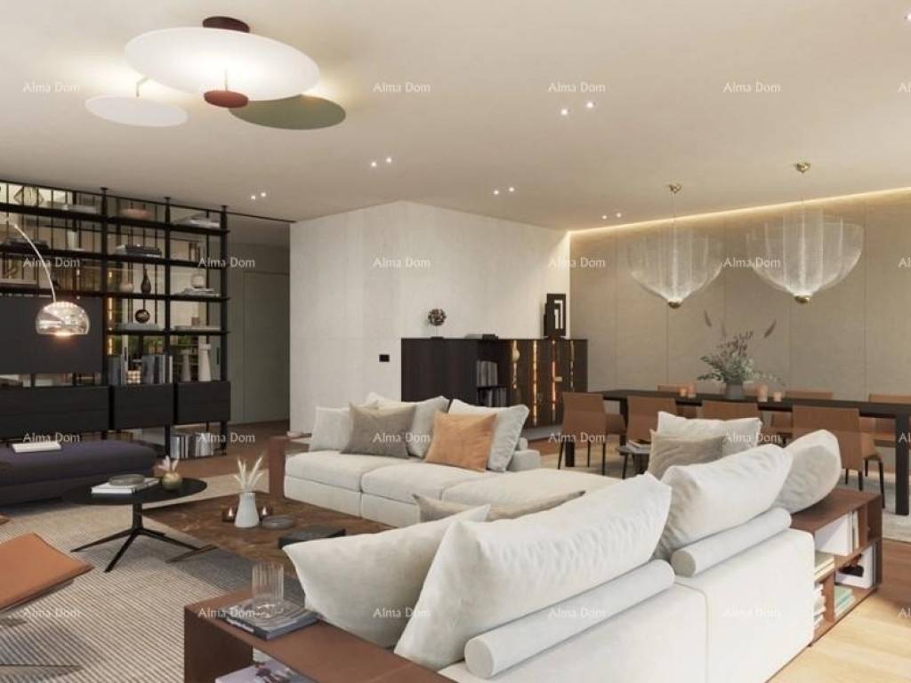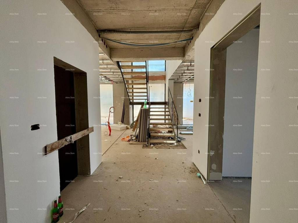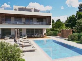 Villa moderna in vendita a Rovigno. Villa con ascensore, superficie 316 mq, composta da piano terra, primo piano e mansarda. Si trova su un terreno di 1180 mq ed è composto da un ampio soggiorno, collegato ad un ampio terrazzo coperto, una lussuosa cucina Poliform dotata di elettrodomestici di fascia alta, tre camere da letto con bagno privato, guardaroba e terrazzi coperti. Terrazza panoramica con jacuzzi, sauna, doccia emozionale, bar, toilette e verde giardino. Terrazze coperte - 164 m. Terrazze aperte - 105 m.