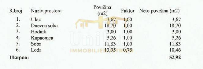 Distribuzione degli ambienti: L’appartamento è composto da un ingresso, soggiorno open space con cucina e zona pranzo, una camera da letto, un bagno e un loggiato.