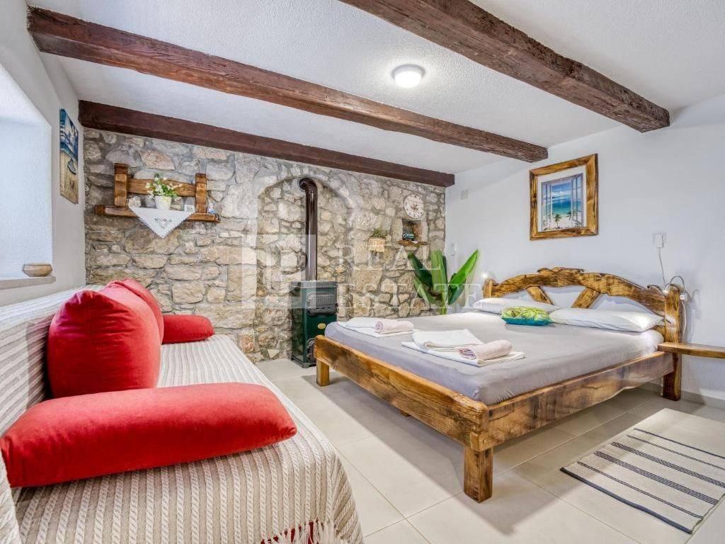 Proponiamo in vendita una splendida e autentica casa in pietra situata in una zona elevata di Crikvenica, con una vista mozzafiato sul mare e sull'isola di Krk.