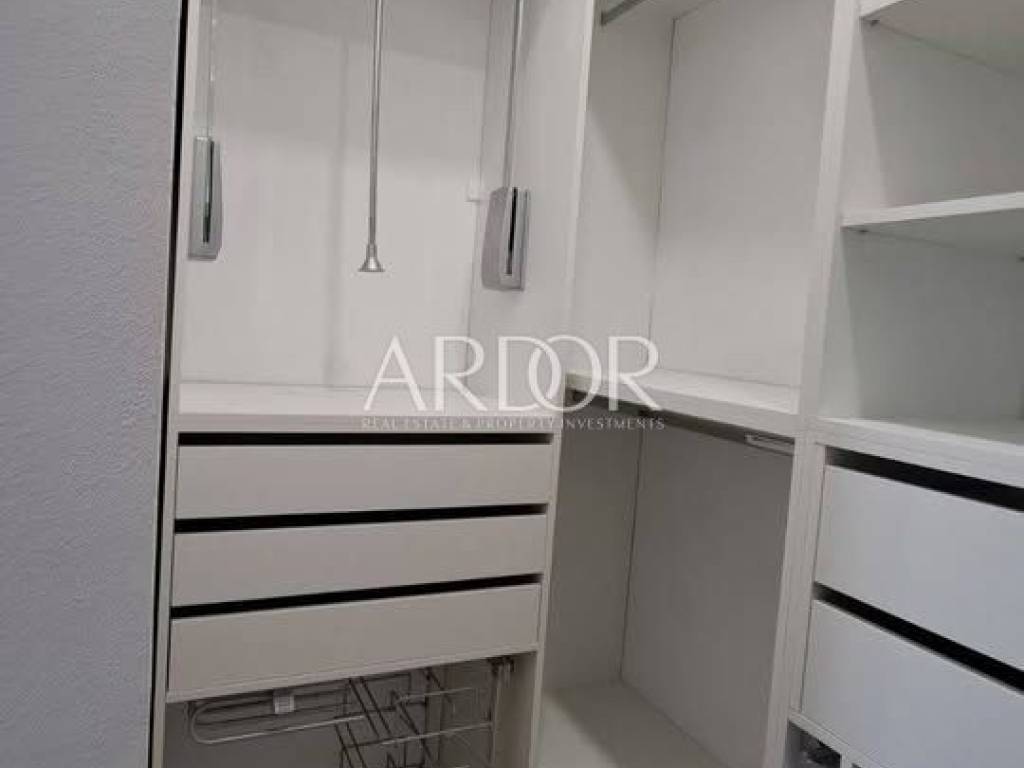 Entrambe le cucine sono realizzate su misura e dotate di tutti gli elettrodomestici necessari, tra cui lavastoviglie, frigoriferi e piano cottura, e l'appartamento viene venduto completamente arredato. L'appartamento più grande è dotato di lavatrice e asciugatrice, mentre quello più piccolo dispone di una lavatrice. Tutti gli ambienti, ad eccezione dei bagni, sono climatizzati, mentre i bagni sono dotati di riscaldamento a pavimento e moderne cabine doccia, garantendo un elevato livello di comfort durante tutto l'anno.