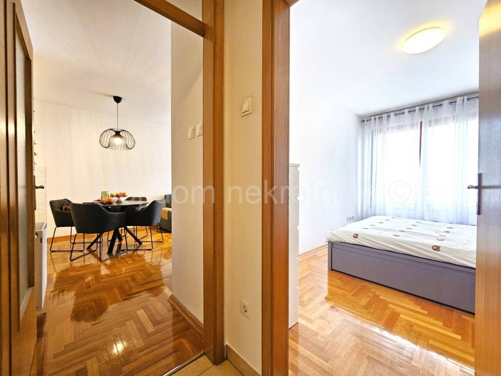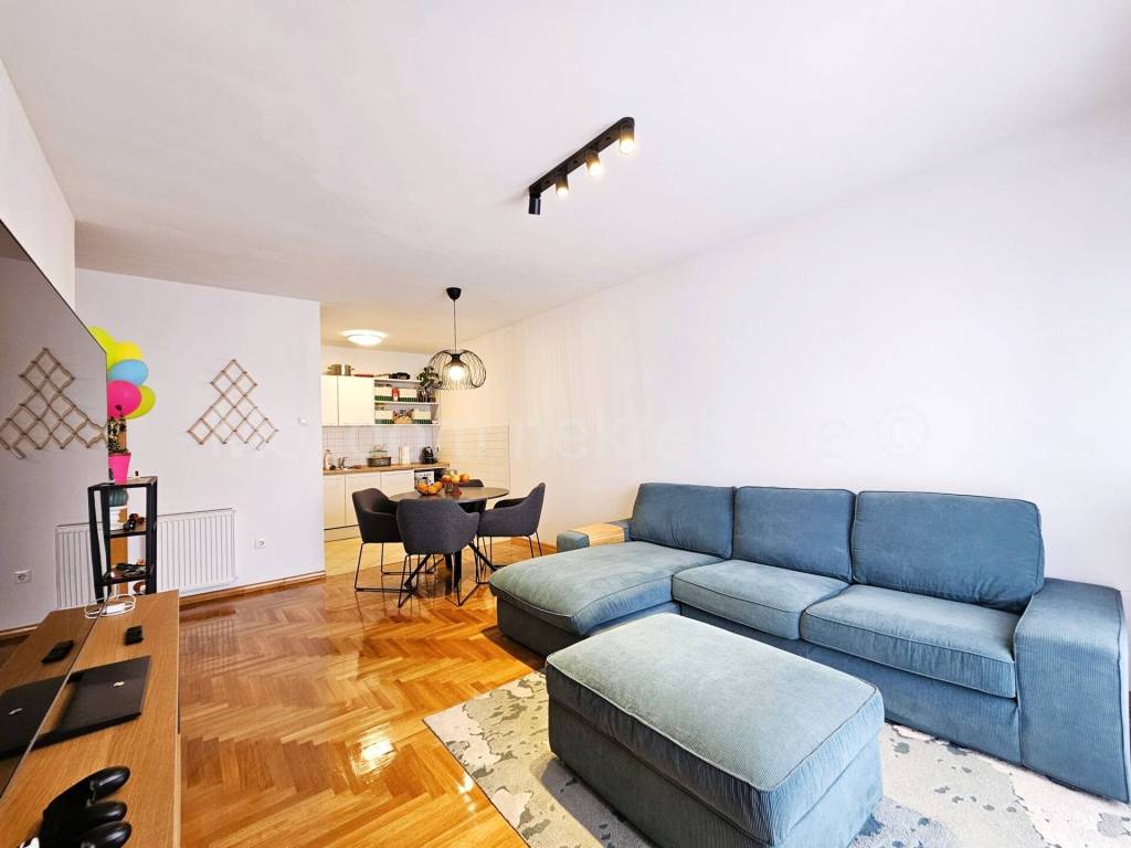 BEZ PROVIZIJE ZA KUPCE! Uvijek najpovoljniji ! Prodaje se lijep 2 soban stan s balkonom. Nalazi se na 4.katu zgrade od 7 katova. Stan je opremljen vanjskom drvo-aluminij stolarijom s aluminijskim roletama, kvalitetnim hrastovim parketom, protuprovalnim vratima i klimom. Smješten je u blizini vrtića, škole, doma zdravlja, trgovine, tramvajske stanice te drugih bitnih sadržaja. Sastoji se od: - dnevnog boravka s kuhinjom i blagovaonom - spavaće sobe - kupaone - hodnika - balkona
