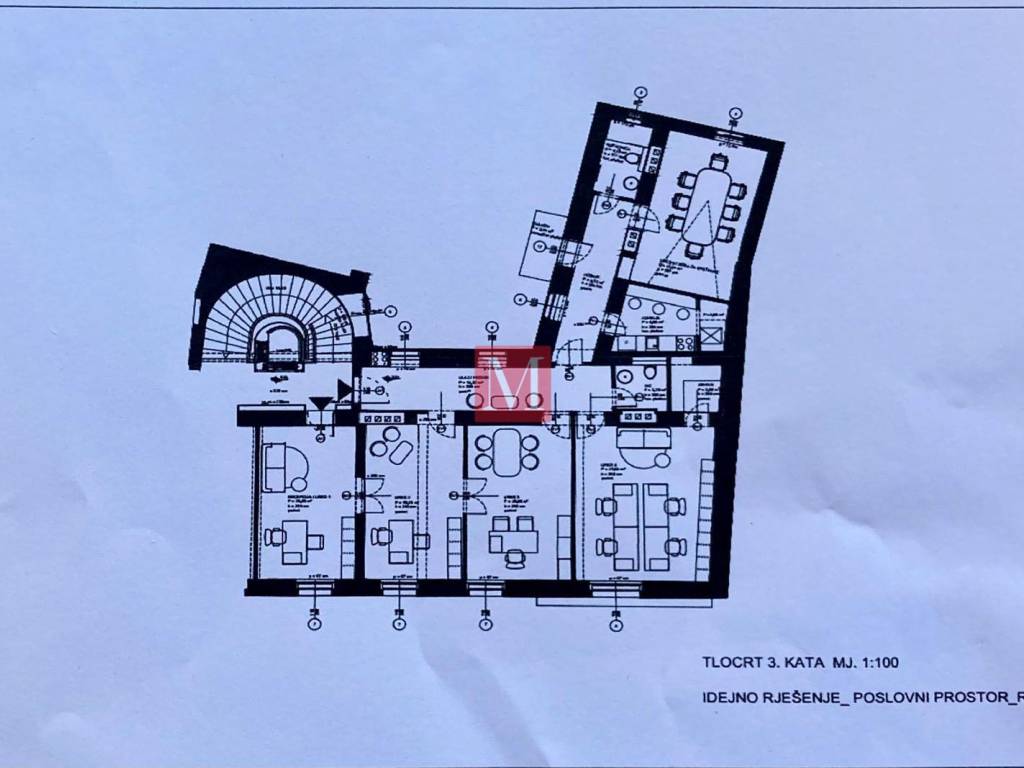 Ovaj veliki poslovni prostor nalazi se u centru grada samo 2 minute hoda od glavnog trga i sa prekrasnim pogledom. Prostor se sastoji od 4 sobe, arhive, kupaonice i gostinjskog toaleta. Slobodno od 1.9.2026. Obavezan sigurnosni depozit. Agencijska provizija 1 mjesečna najamnina + pdv.