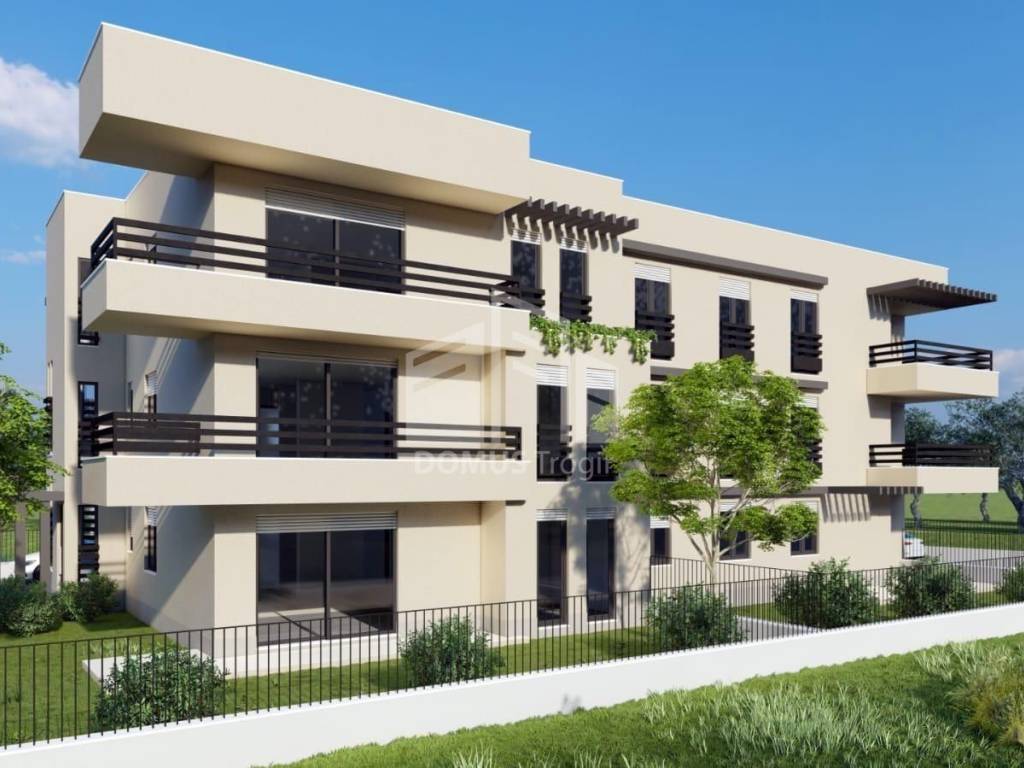 We are offering for sale a three-bedroom apartment on the ground floor of a residential building under construction in Kaštel Stari.