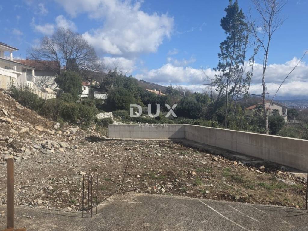OPATIJA, IČIĆI, POLJANE- zemljište 910m2 s započetom gradnjom s panoramskim pogledom na more za obiteljsku kuću/ villu/ apartmane/ kuću za iznajmljivanje- odmor s bazenom