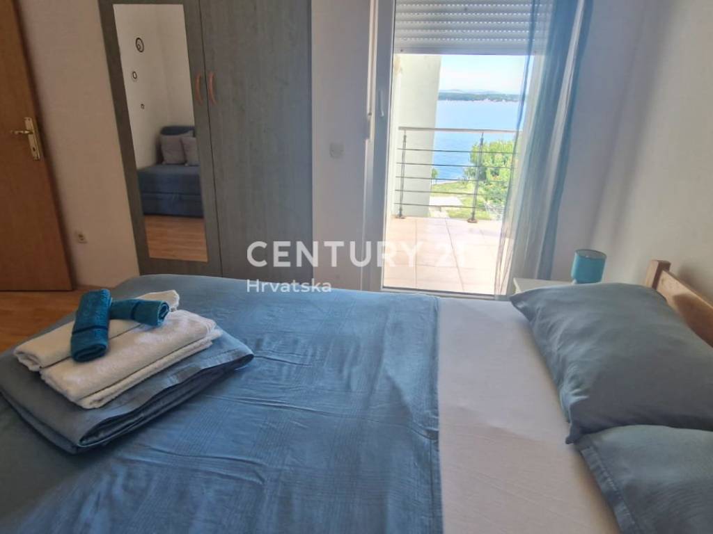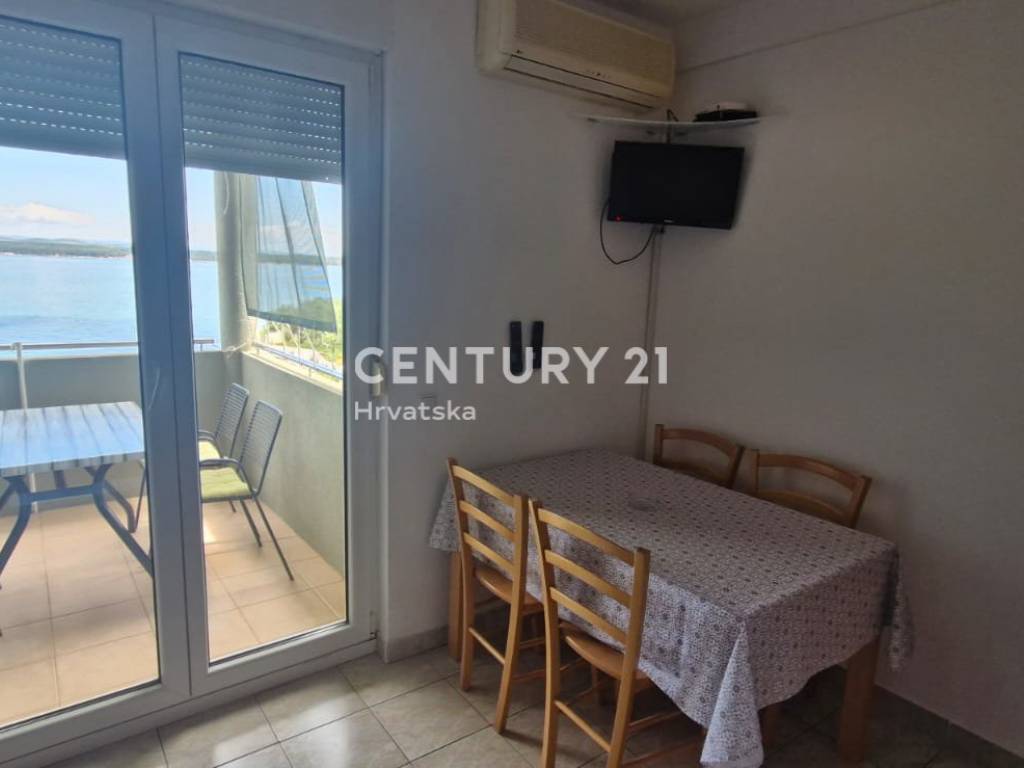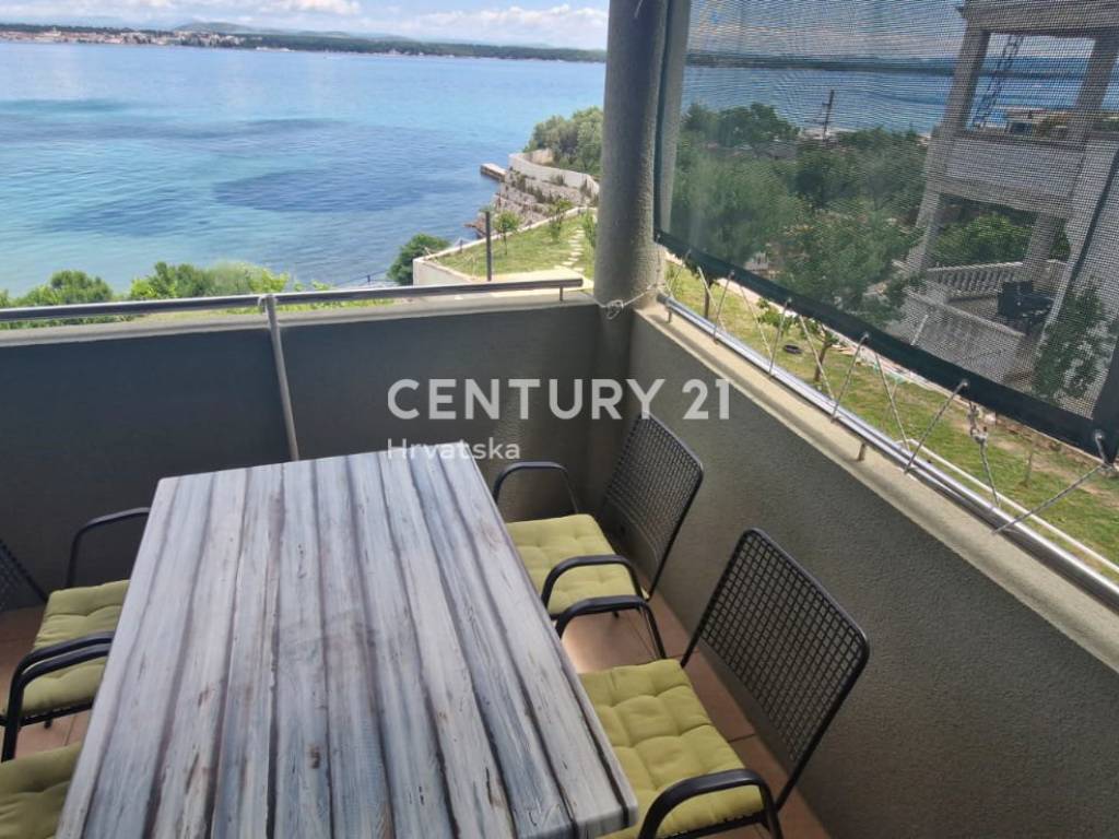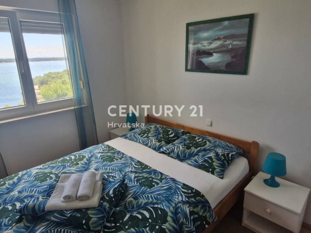 Predstavljamo vam trosobni stan površine 47 m2, smješten na prvom katu dvokatnice u Tkonskoj idili. Ova nekretnina nudi izuzetnu lokaciju u prvom redu do mora, s predivnim pogledom na JI orijentaciju koja osigurava obilje sunčeve svjetlosti tijekom cijeloga dana, dok vas pjesčana plaža poziva da uplovite u valove mora.