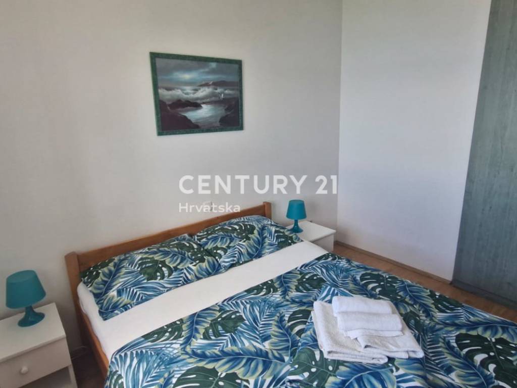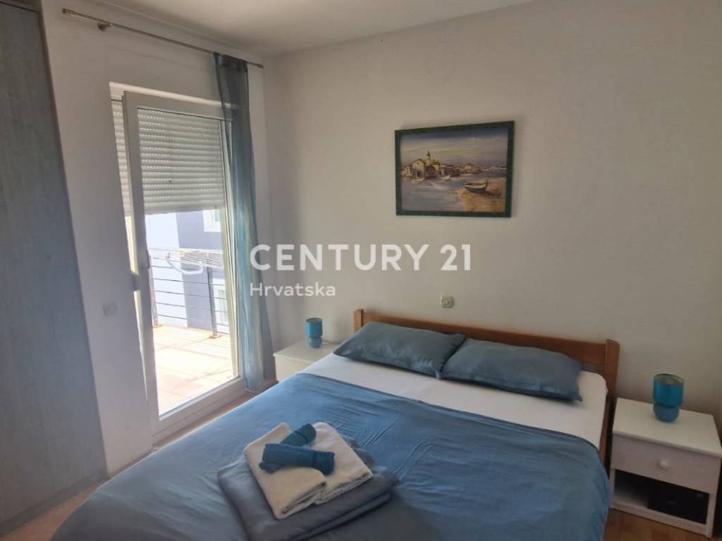 Stan se sastoji od dvije spavaće sobe, kuhinje sa boravkom, što ga čini idealnim izborom za obitelji ili parove koji traže funkcionalan i udoban životni prostor u mirnom okruženju. Pripadaju mu dva balkona i iz svake sobe nudi savršen pogled na plavetnilo mora, grad Biograd na moru, na drugoj strani mora .