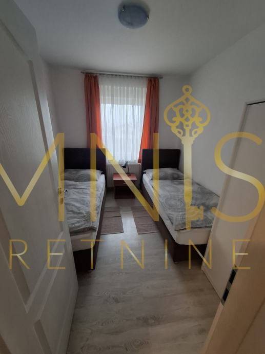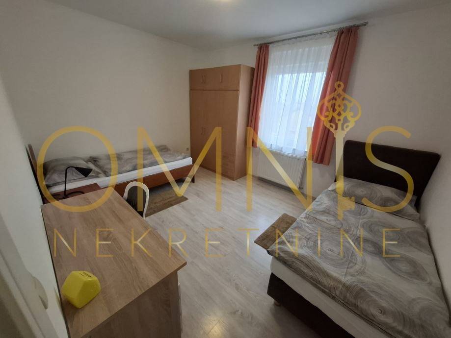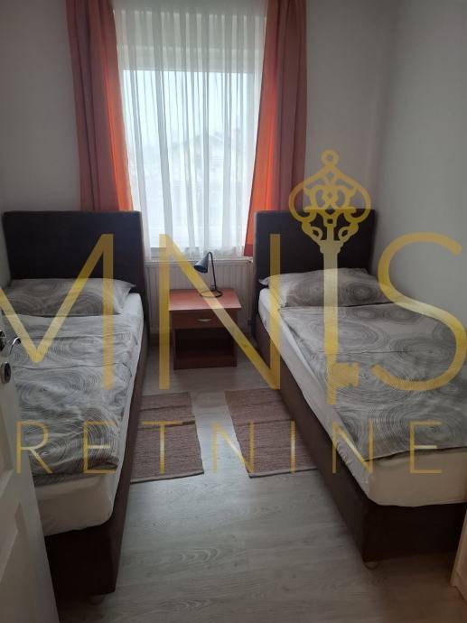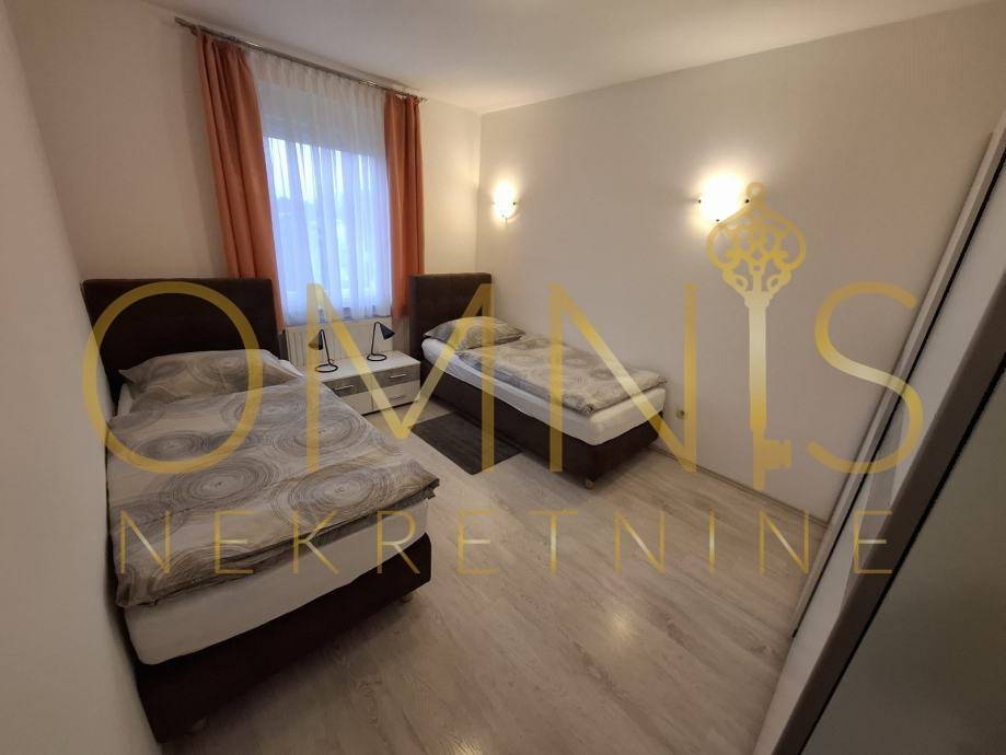 Iznajmljuje se novouređeni stan s tri spavaće sobe, dvije kupaonice, potpuno opremljenom kuhinjom, dnevnim boravkom, hodnikom, ulaznim trijemom i balkonom. Stan je pogodan za smještaj 6 radnika ili veće obitelji. Osigurana su 2 parkirna mjesta. Stan je u potpunosti opremljen i namješten. Grijanje je riješeno putem: klima uređaja, etažnog plinskog grijanja (radijatori) S balkona površine 14 m2 pruža se pogled na Grobnički kraj. Stan se nalazi u kući s 3 stana, posjeduje 2 parkirna mjesta pogodne za osobna i kombi vozila. Stan se nalazi u mirnom djelu Podhuma nadomak svih urbanih sadržaja. Cijena jedne najamnine iznosi 1500€. U cijenu najma su uključene režije.