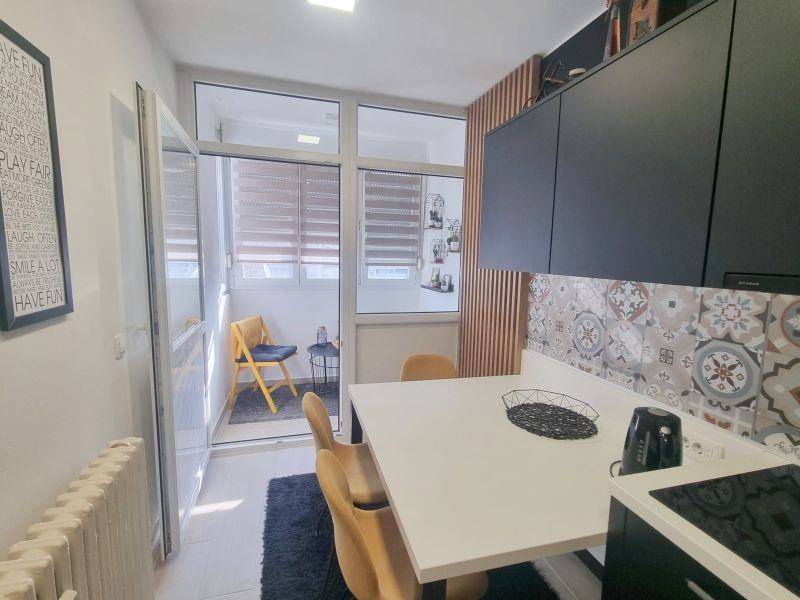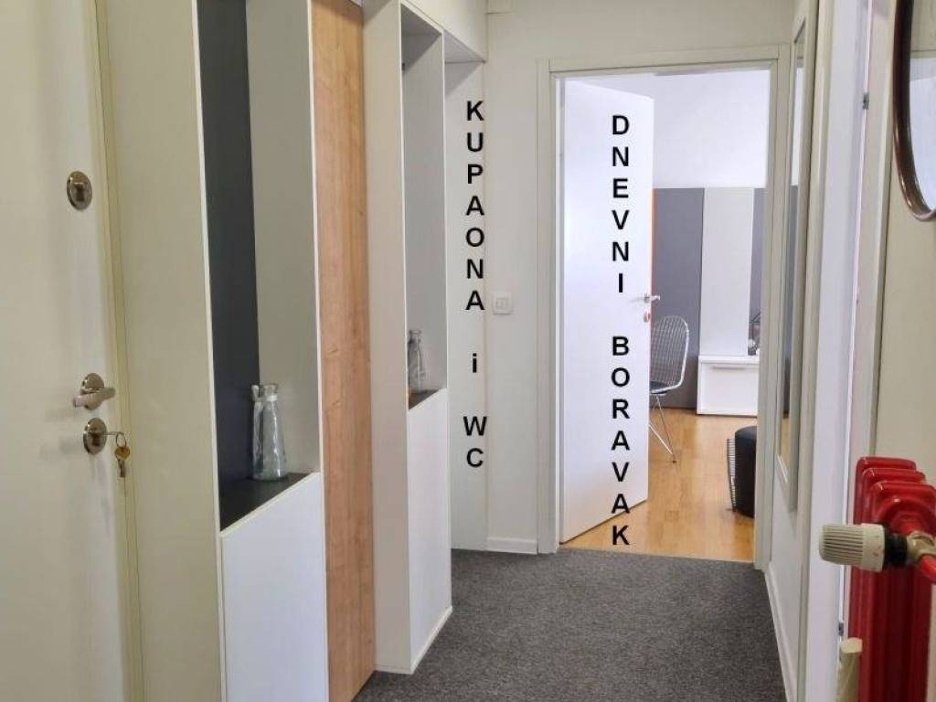 ZAGREB - TREŠNJEVKA - SREDNJACI Srednjaci su zagrebačko gradsko naselje (kvart) na zapadnom dijelu grada između Zagrebačke avenije (sjever) i Horvaćanske ceste (jug), a zapadno od Knežije, odn. Selske ceste. Stan se nalazi u stambenoj kvalitetno građenoj zgradi NA PRVOM KATU osmerokatnice vrlo kvalitetno građenoj 1965. godine, tako da ju potres iz 2020. godine uopće nije ni malo oštetio. U blizini se nalaze pošta, trgovine, pekarnica, frizerski salon, foto radnja, cvjećarna, kafići, ljekarna, osnovna škola, vrtić, i ostali urbani sadržaji. Jarunsko jezero i sportski centar “Jarun” su desetak minuta pješice od stana Kvart je prometno odlično povezan tarmvajskim linijiama 5 i 17 na Horvaćanskoj cesti i autobusnom linijom 109 na Selskoj cesti. PARKING je JAVNI i NENAPLAĆUJE SE. Ovaj izvrstan 2 SOBNI STAN kompletno adaptiran i renoviran (nove vodovodne i odvodne cijevi, novi razvod struje) te dizajnerski i po mjeri namješten i uređen sa novom pvc stolarijom s pvc roletnama. Lođa je ostakljena na način da se i prozračuje i čini mali zimsk vrt za odmor za ispijanje crnog napitka. U suhom, betoniranom suterenu stanu pripada spremište (ŠUPA) od 2 m2 i slobodno korištenje DVIJE zajedničke BICIKLANE. STAN 54 m2 + spremište 2 m2 STAN SE SASTOJI OD: Predsoblja/hodnika, izbe (špajze) kuhinje s blagovaonom i izlazom na lođu, dnevnog boravka, spavaće sobe i kupaone s wc-om. ORIJENTACIJA: ISTOK Nova PROTUPROVALNA ULAZNA VRATA GRIJANJE: je radijatorima centralno preko gradske toplane s pripadajućim razdjelnicima koji ekonomiziraju potrošnju, kao i topla voda. Stan je i inače zimi vrlo ugodno topao jer je u zgradi vrlo dobro pozicioniran. Kompletno je namješten i opremljen potrebitim aparatima: HLADNJAK sa ledenicom, mikrovalna pećnica, PERILICA posuđa, NAPA, ugradbena električna ploča 4 mjesta, ugradbena pećnica …, PERILICA rublja, TV, KLIMA uređaj… SVI UREĐAJI I NAMJEŠTAJ su u cijeni i ostaju u stanu. Zbog optimalne kvadrature režije su minimalne, na mjesečnoj bazi cca 100 € ljetne, te cca 140 € zimske. Stan je ODMAH USELJIV po isplati cijene. VLASNIŠTVO JE ČISTO i bez tereta, a zgrada ima uporabnu dozvolu tako da je kupoprodaja moguća i kreditom ili kombinirano. Uvažavajući izvrsnu makro i mikro lokaciju stana, odličnu opremljenost, te vrlo korektnu cijenu i izuzetno male režije, Agencija za promet nekretninama Centar poslovnih usluga d.o.o. ga toplo svima preporuča. !!!! Kontakt za informacije i dogovor za razgled - moguće i vikendom, na 091/333-23-23, 095/333-23-23, ivan@nekretnine-hr.eu