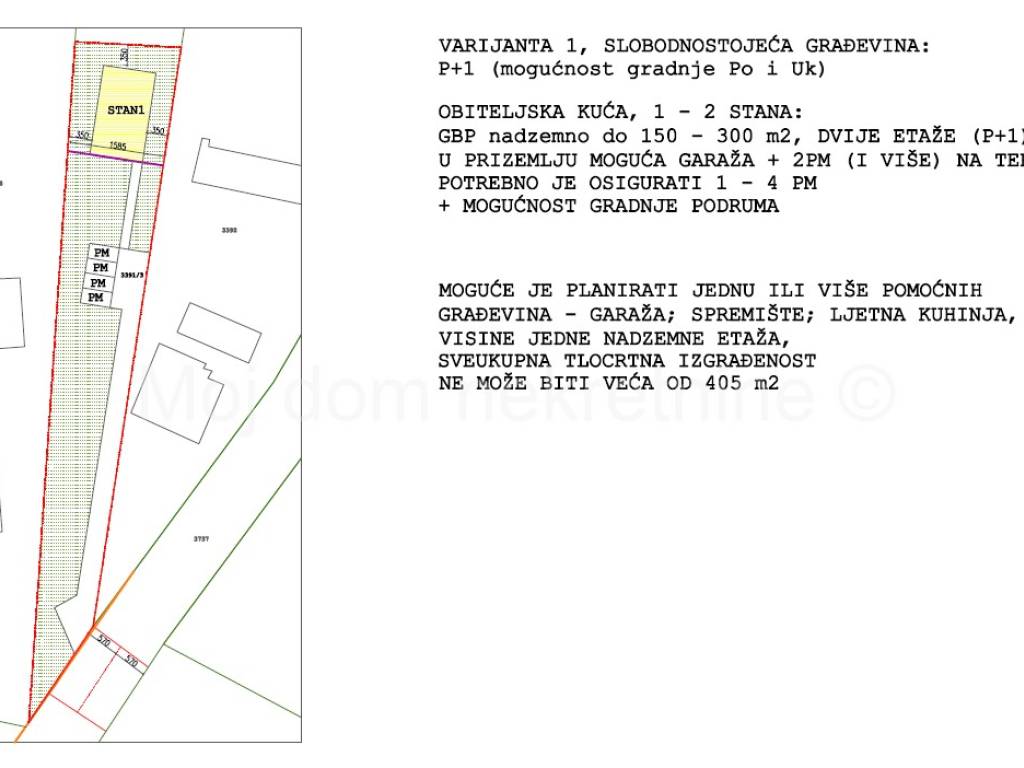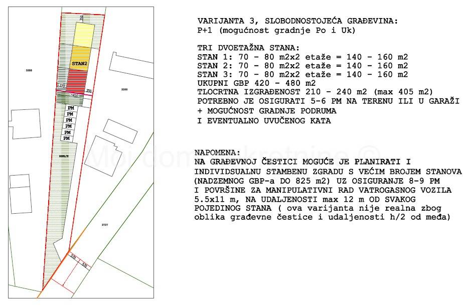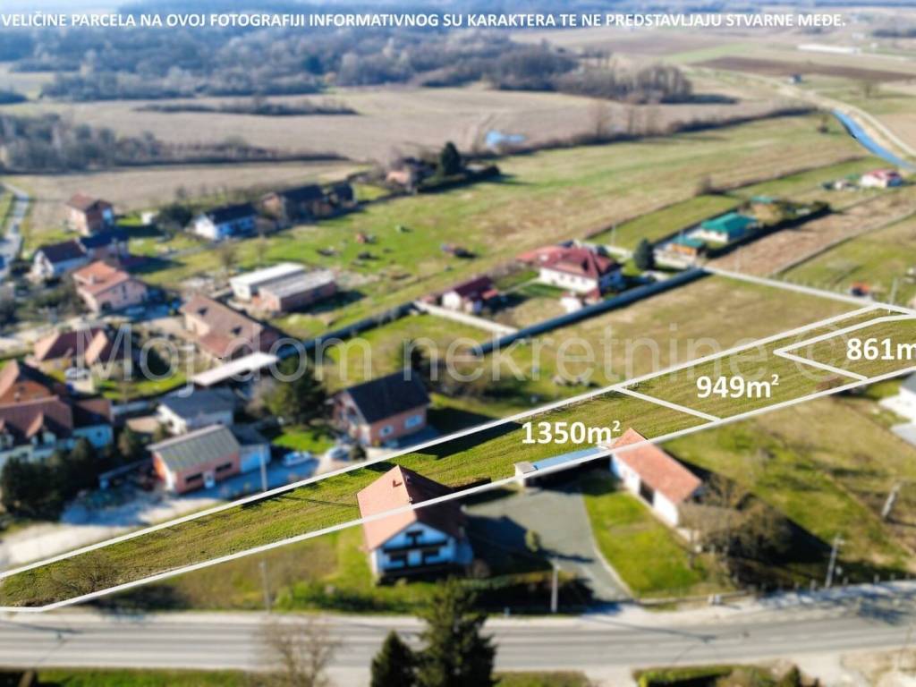BEZ PROVIZIJE ZA KUPCE! Uvijek najpovoljniji ! Prodaje se građevinsko zemljište od 1350m2. Nalazi se uz glavnu prometnicu, po kojoj prolazi sva infrastruktura (struja, plin, gradski vodovod i kanalizacija). Zemljište je ravno, a među fotografijama u oglasu su neke od mogućih varijanti gradnje.Uz zemljište se nalazi autobusna stanica. Prodaju se i susjedna dva građevinska zemljišta od 861m2 po cijeni od 99.000 i 949m2 po cijeni od 89.000. Mogućnost kupnje jednog ili više zemljišta. Vlasništvo uredno Posrednik: Mislav Plavanjac, Moj dom nekretnine d.o.o. *USLUGE KREDITIRANJA* U suradnji s licenciranim kreditnim posrednicima olakšavamo Vam put do stambenog kredita pronalaskom najpovoljnijeg modela kredita za Vas. Kontaktirajte nas i prepustite se planiranju useljenja u svoj dom iz snova! *USLUGA ENERGETSKOG CERTIFICIRANJA* U suradnji s licenciranim energetskim certifikatorima nudimo Vam mogućnost usluge energetskog certificiranja Vaše nekretnine. Obratite nam se! Za sve dodatne informacije možete nas kontaktirati na broj mob.: 099/637-2727 ili na kontakte navedene u oglasu. Obratite se s povjerenjem! Cjelokupna ponuda nekretnina na www.mojdom-nekretnine.hr