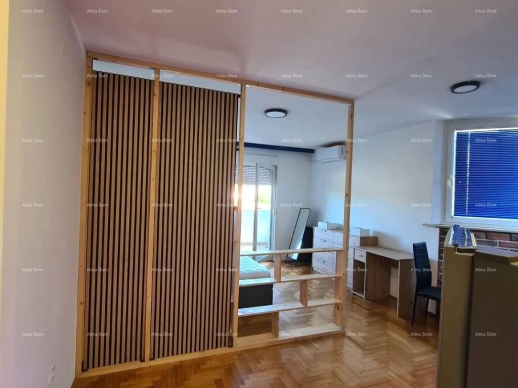 In vendita appartamento a Pula, in prossimità del mare! Appartamento di 40 m2, situato al primo piano di un edificio. L'appartamento è completamente ristrutturato, con mobili nuovi e viene venduto così com'è. È composto da: corridoio, bagno, cucina, zona giorno e zona notte e un bellissimo balcone spazioso.