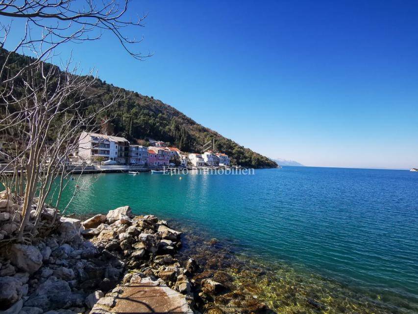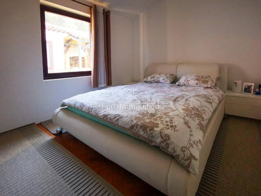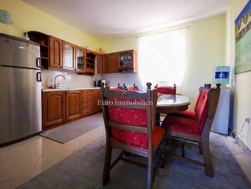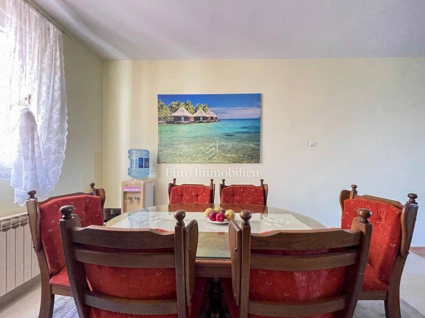 The house is built on a plot of 199m2 and is located only 20 meters from the sea, in a quiet street, without much traffic. The house has an area of 226.68 m2 and consists of a ground floor and two upper floors. The ground floor has been transformed into a summer kitchen with a fireplace and a wonderful view of the sea, gross area 40.78 m2. On the first floor of the house there is a place for a living room and a dining room with a kitchen, one bathroom and a small storage room under the stairs. The living room opens onto one of the terraces with a beautiful view. The second floor consists of 3 bedrooms and one bathroom. The master bedroom opens onto a terrace with an even more beautiful view and a loggia that is currently used as a storage room.
