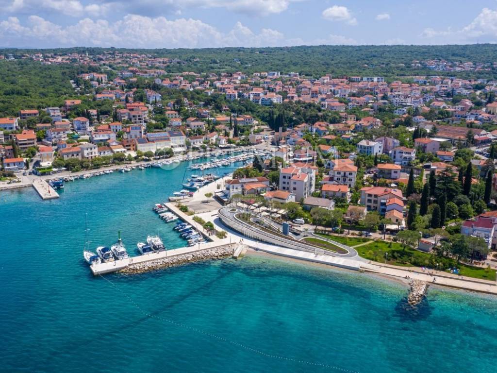 In una posizione attraente a Malinska, nelle immediate vicinanze del mare, è in vendita un terreno edificabile con permesso di costruire valido per la realizzazione di un edificio residenziale con quattro unità abitative e due piscine.
