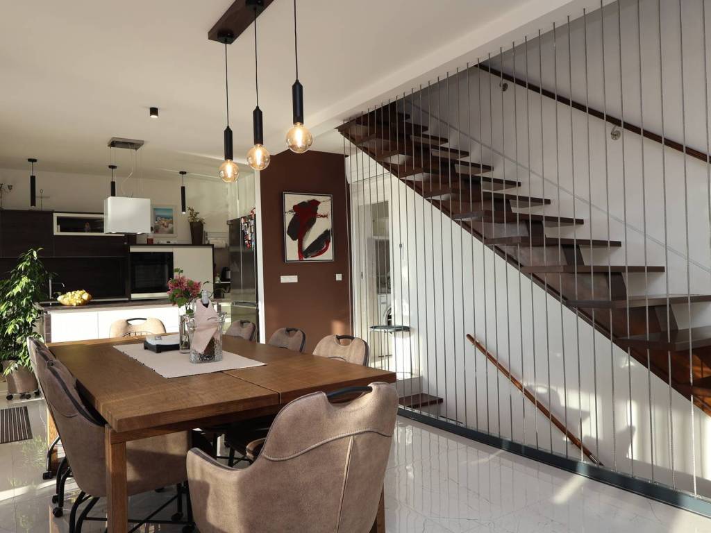 Na uređenoj i ugodno osmišljenoj okućnici nalazi se natkrivena terasa, roštilj, sunčalište, padajući bazen te parkirna mjesta.