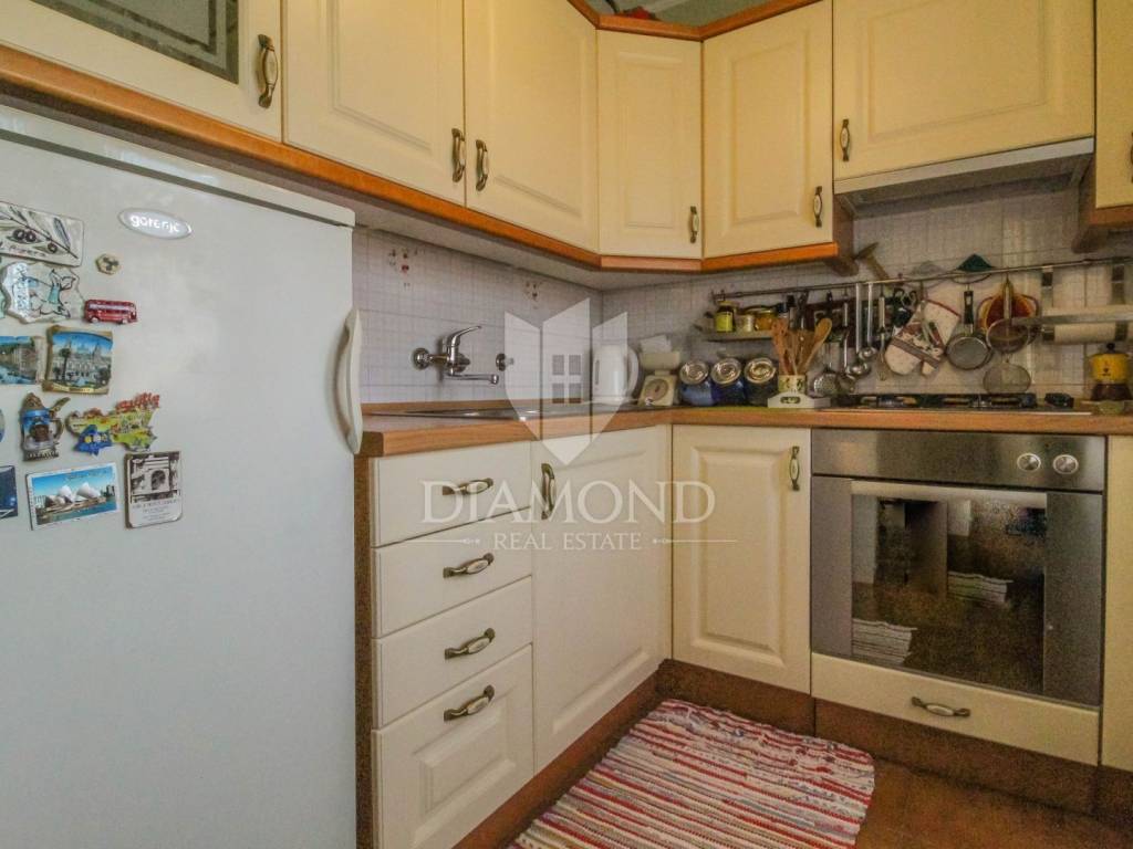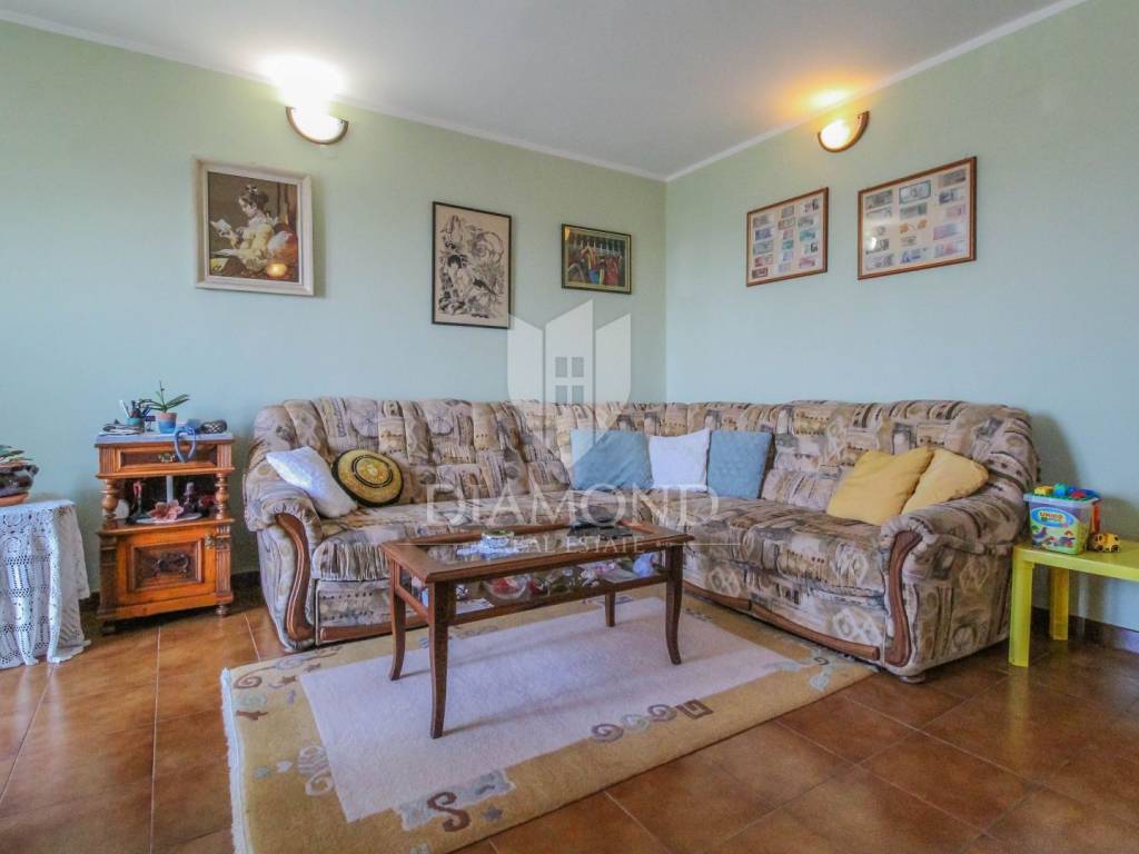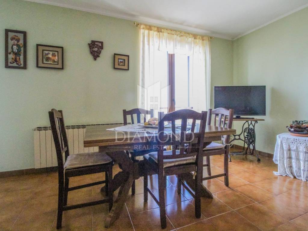La casa, con una superficie di 129,42 m², si compone di un piano terra (osteria, garage, ripostiglio) e di un piano superiore con un appartamento di 70,41 m² composto da soggiorno, cucina e sala da pranzo, 2 camere da letto e un bagno. L'appartamento offre una vista aperta sul mare e sulla natura, che conferisce allo spazio una particolare sensazione di ampiezza e luminosità. L'immobile emana un'atmosfera accogliente e offre un ambiente ideale per rilassarsi lontano dal trambusto della città.