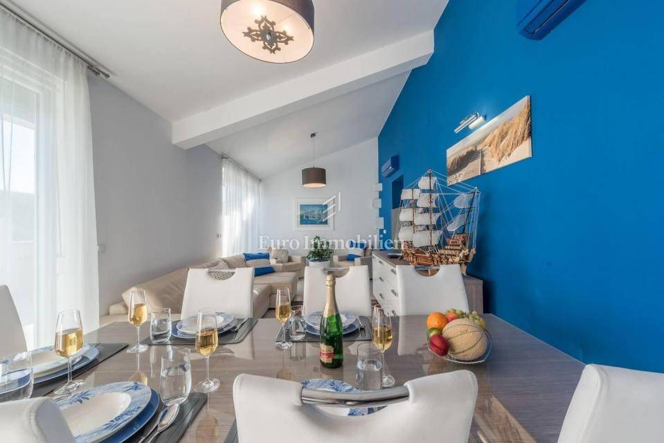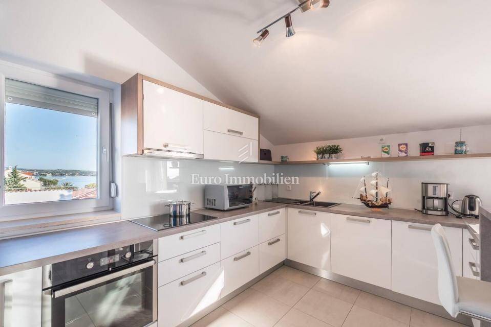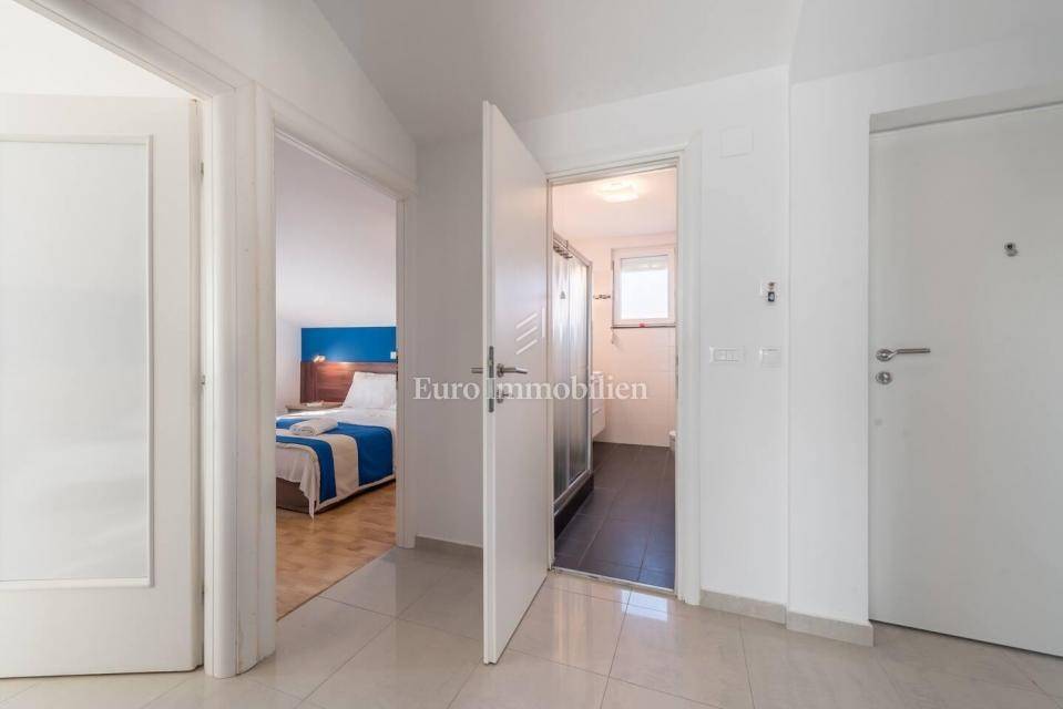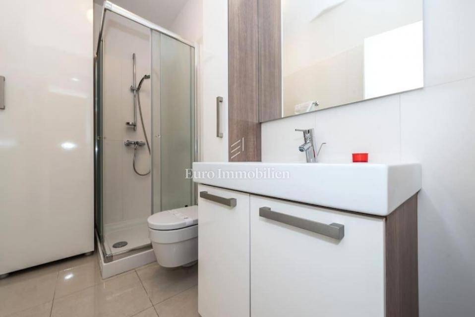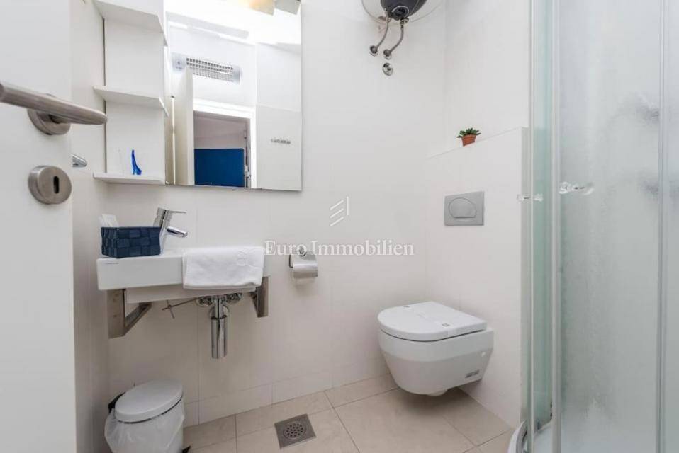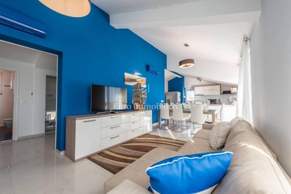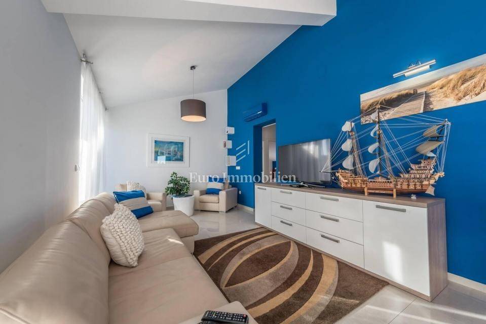 In sostanza, si tratta di due appartamenti collegati in un unico grande attico, con tre camere da letto, due bagni e un ampio open space con soggiorno e cucina. Ampie pareti scorrevoli conducono a una terrazza panoramica con tre parti, una zona solarium, una zona conviviale e una zona lounge. L'appartamento è dotato di due ripostigli al piano interrato e due posti auto nel cortile del condominio. Tutti gli ambienti sono climatizzati e l'appartamento è completamente arredato e corredato e viene venduto come tale.
