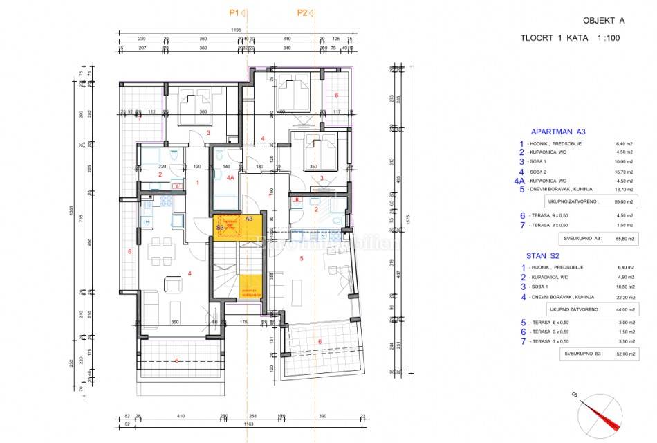 Ci sono due appartamenti al piano terra e su entrambi i piani, uno con una camera da letto e un soggiorno e l'altro con due camere da letto e un soggiorno. Gli appartamenti al piano terra hanno una parte del giardino e tutti hanno una vista sul mare. Gli appartamenti con due camere da letto sono progettati in modo da poter essere facilmente divisi in due (studio e camera da letto), con un balcone, il che li rende ideali per l'affitto turistico, soprattutto in una località come Novalja, che ha un ottimo tasso di occupazione. Tutti gli appartamenti sono dotati di aria condizionata (ogni stanza è climatizzata) e la proprietà dispone anche di un parcheggio. La proprietà è soggetta al regime di IVA ed è stata costruita da un investitore verificato.