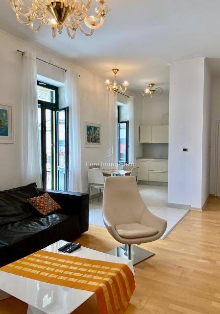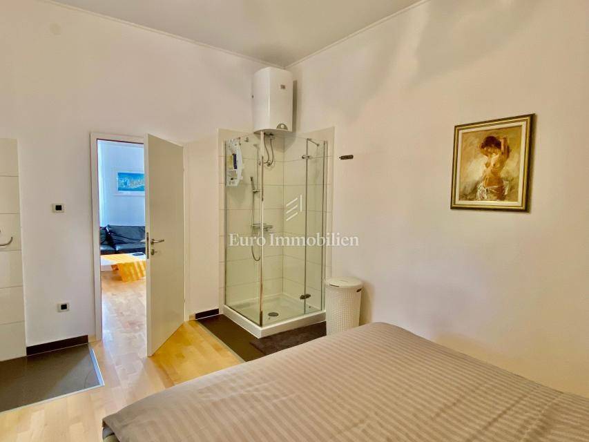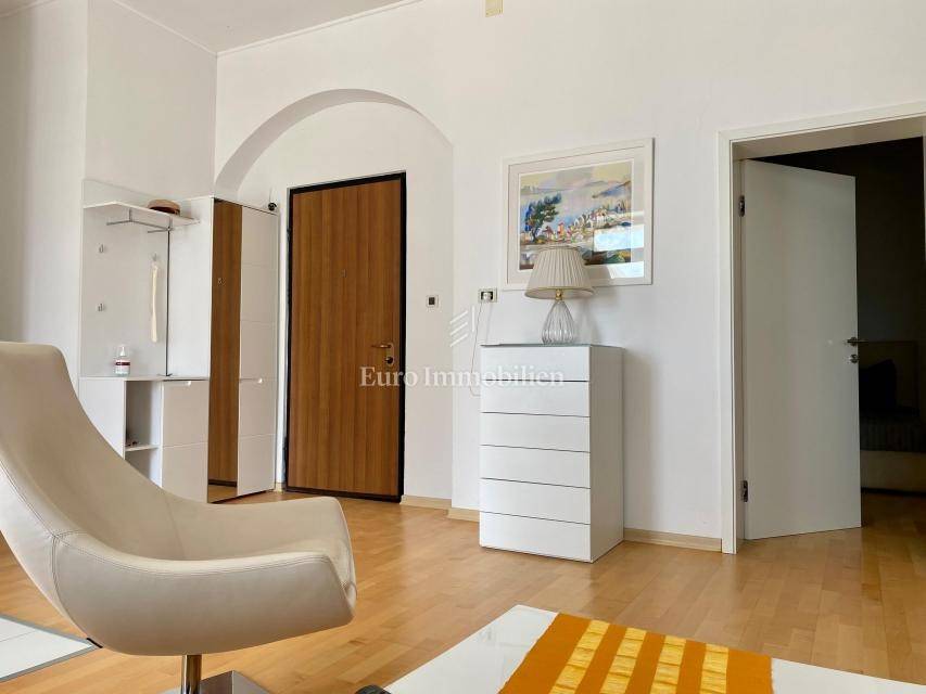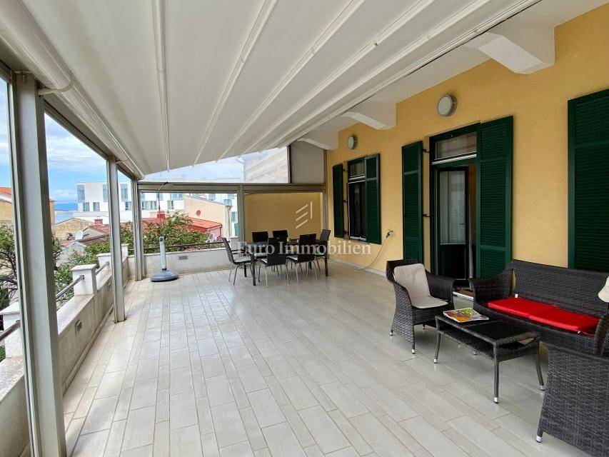 A soli 80 metri dal mare, nel centro di Crikvenica, si trova questo appartamento al primo piano di una villa costruita all’inizio del secolo scorso.