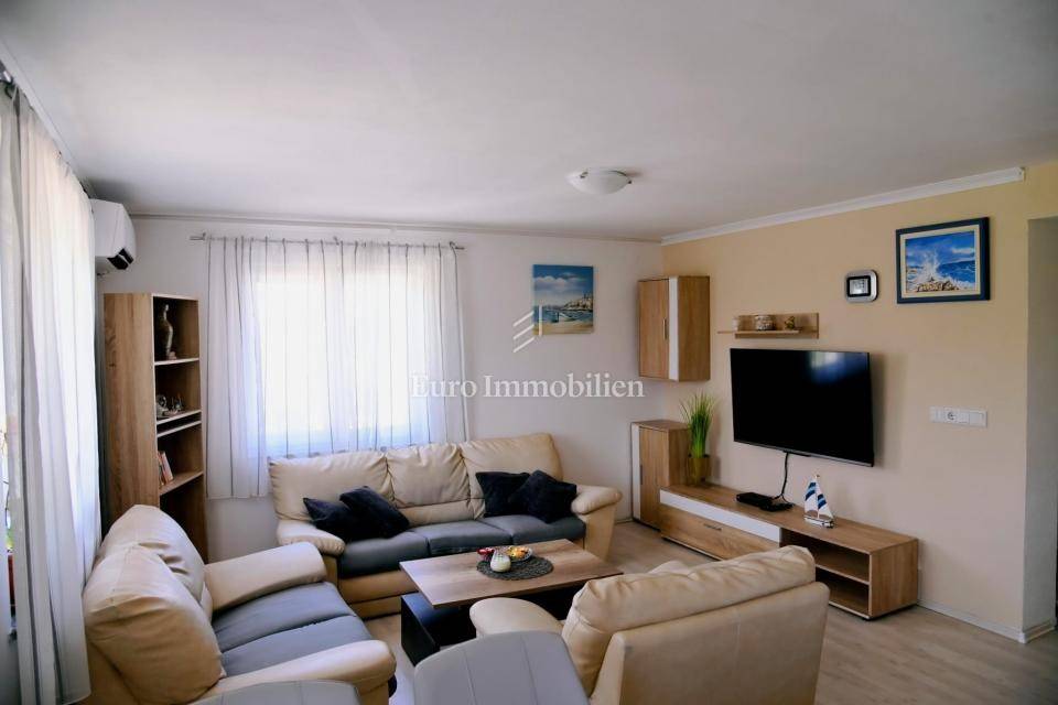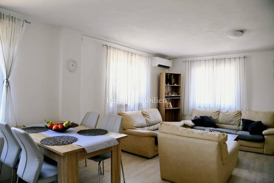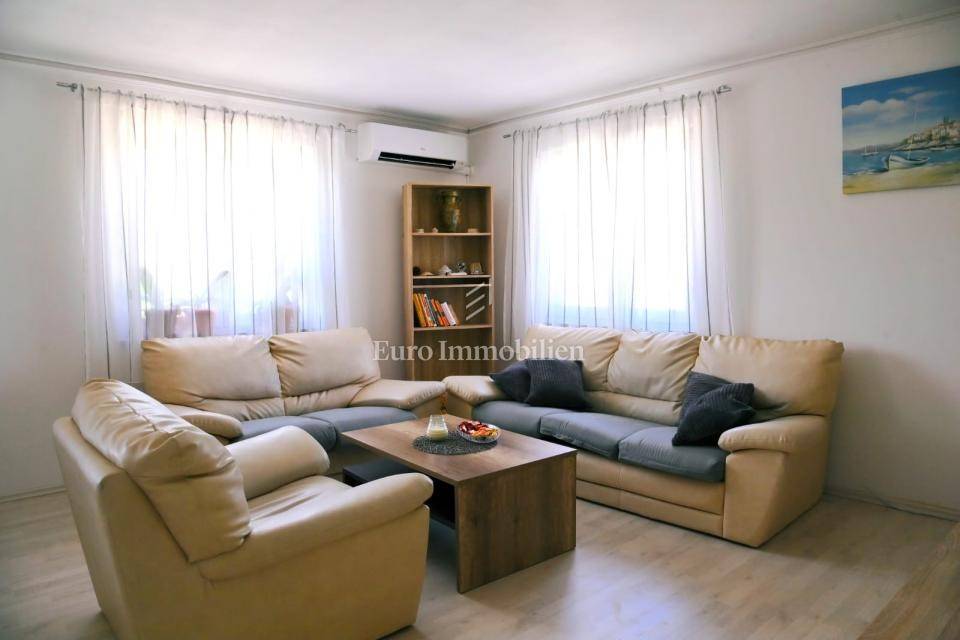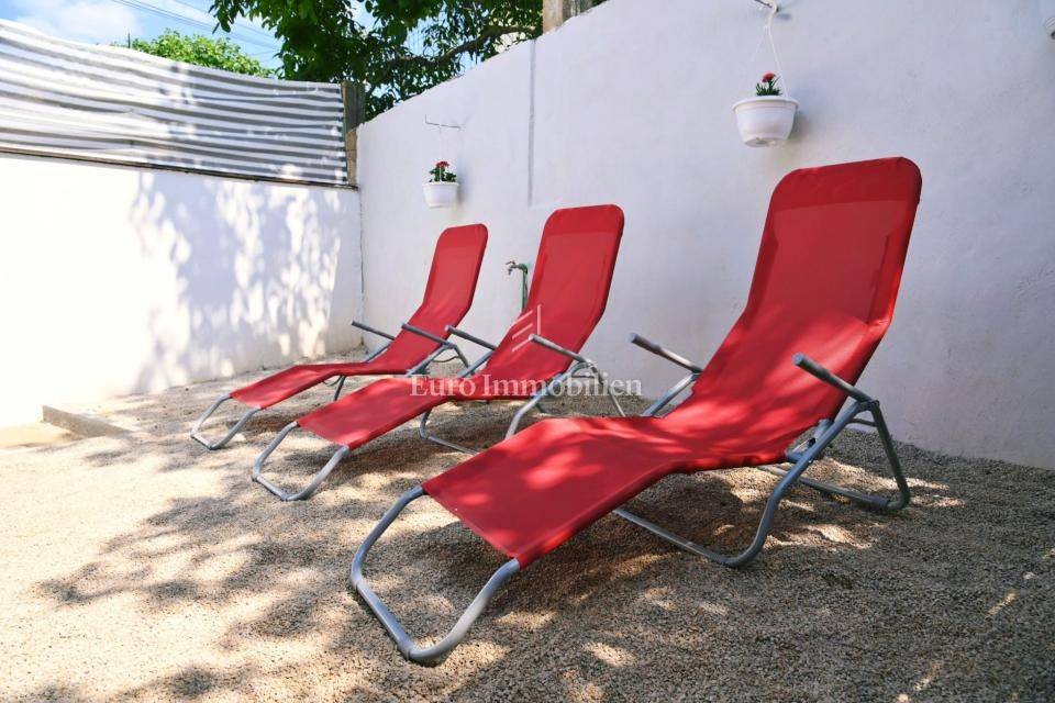 Casa di circa 160 m2, costruita su un terreno di 403 m2. La casa è composta da due appartamenti con due camere da letto. Ogni appartamento è dotato di due camere da letto, un soggiorno, una cucina, una zona pranzo e un bagno. Nel giardino si trova una piscina con zona solarium e barbecue. La casa viene venduta arredata e dotata di aria condizionata.