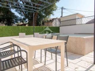 Nel giardino si trova una zona barbecue con cucina esterna, tavolo e sedie da esterno coperti. La piscina è dotata di sistema di elettrolisi integrato e adiacente ad essa è presente un solarium attrezzato. Numero di posti auto: due