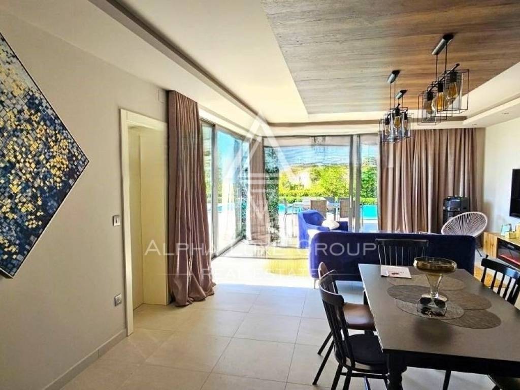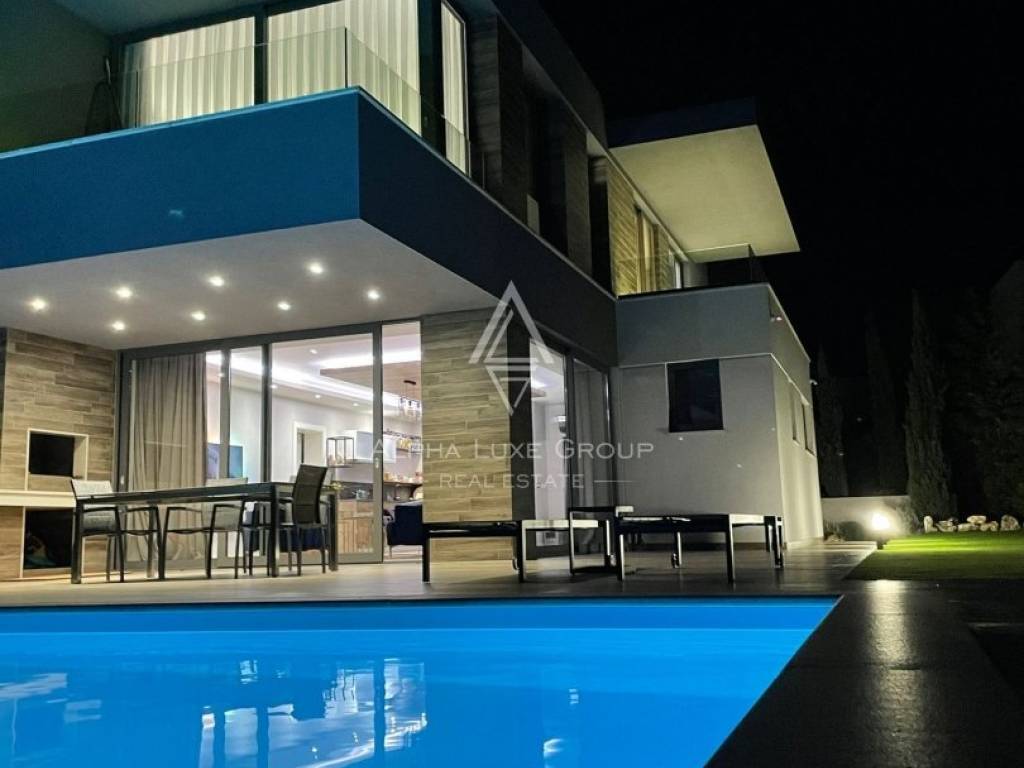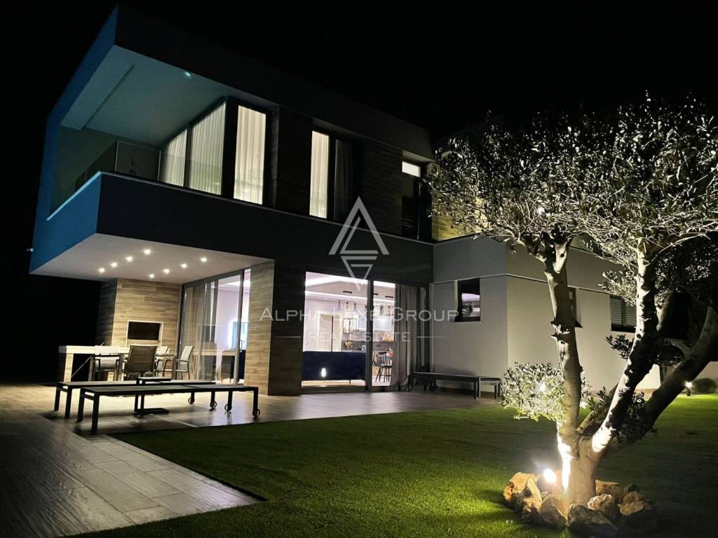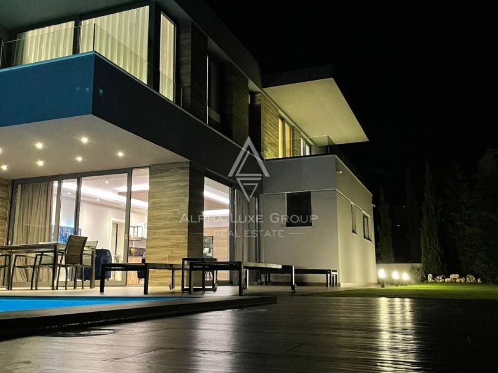 The villa is characterized by an excellent room layout , modern design , quality materials , air conditioning of all rooms , underfloor heating , video surveillance , alarm system , smart system management , ALU joinery , quality furniture .