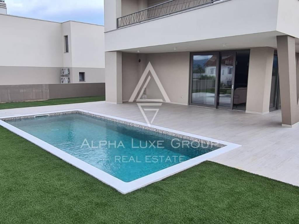 Equipment: - Preparation for Heating the water in the pool with a heat pump - Electric underfloor heating of the entire building , possible regulation via Wi - Fi - preparation for a photovoltaic power plant on the roof - Furniture - basic ( custom- made kitchen with appliances , table and chairs , living room furniture , beds in the bedrooms , wardrobes , bathroom basic furniture and sanitary ware , TV in the living room - air conditioners in every room and living room , LG Art cool -sauna - Lighting fixtures - Semelrock Paving - " Figures " ceramics - Porotherm brick - STO fa çade system - Panoramic lift - and - slide walls , PVC - preparation for charged electric vehicles.
