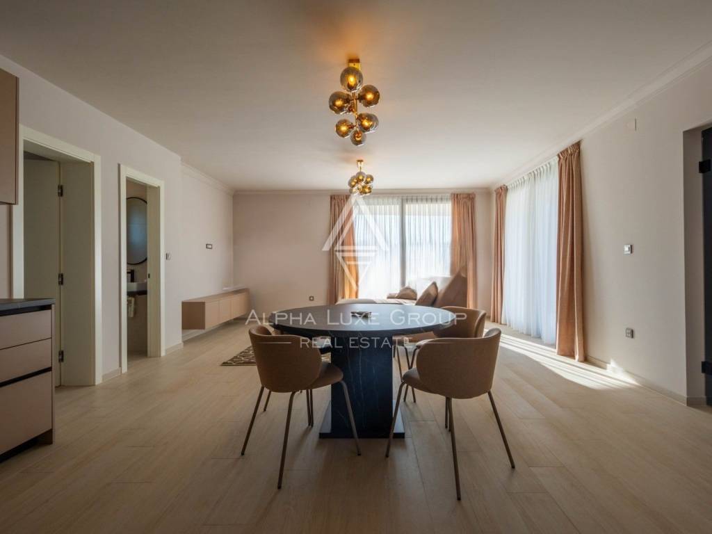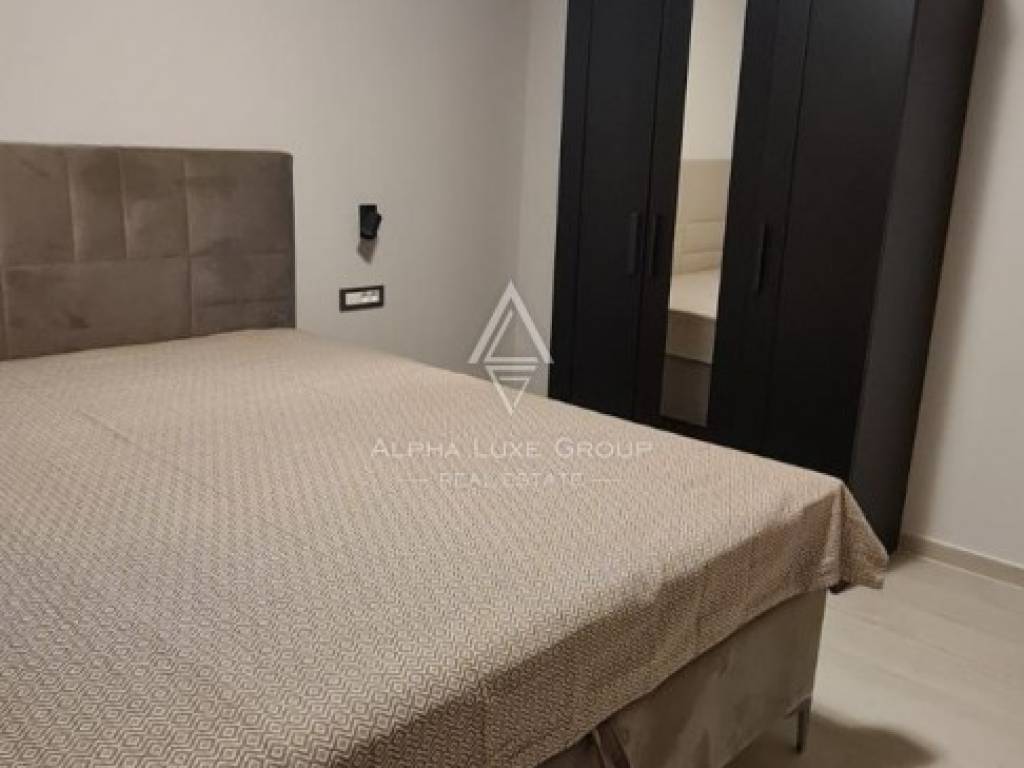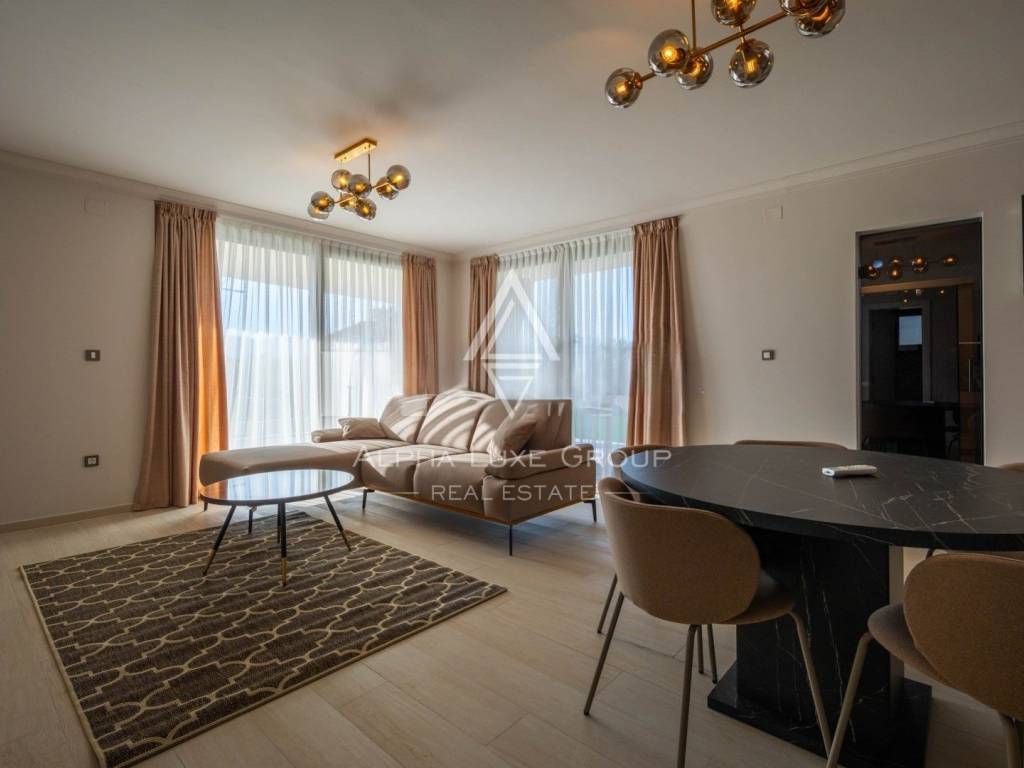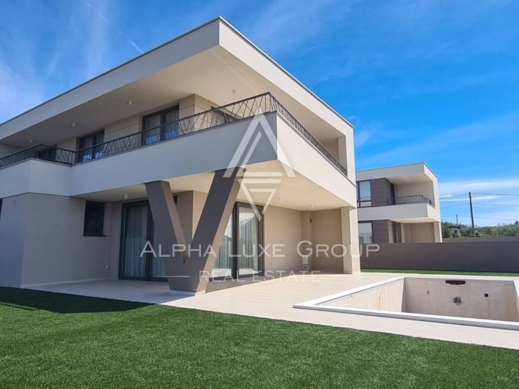 For sale is a beautiful detached house B1 - an urban villa located on the island of Krk , in Brzac , with a living area of 213 m2 . The villa consists of ground floor and first floor and an associated garden . On the ground floor there is an entrance hall , a kitchen with a dining room and a living room , a bedroom with its own bathroom , a toilet , a storage room , a sauna , two storage rooms and a covered terrace . Upstairs there are three bedrooms with access to the terrace , two bathrooms , a dressing room , a covered and an uncovered terrace . The villa has a beautiful view of the sea and is completely finished . The interior is fully furnished and as such is for sale . The environment is landscaped with greenery and an irrigation system and a remote fence .