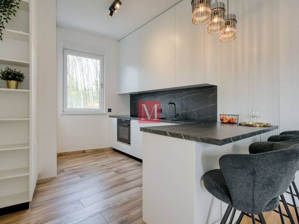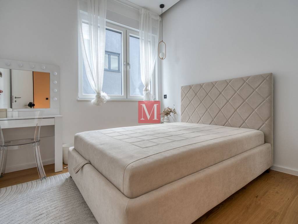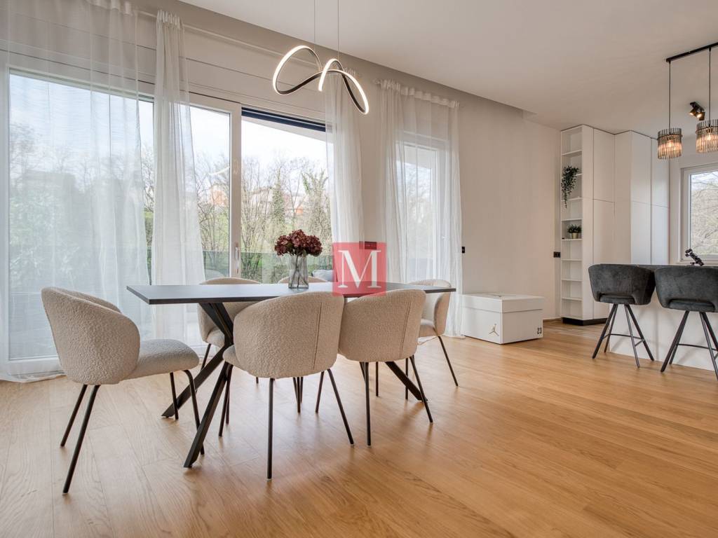Located in the exclusive and peaceful residential area of Remete, just moments from Maksimir Park, this elegant four-room apartment (3 bedrooms) offers a perfect blend of luxury, privacy, and nature. A spacious and light-filled living area with floor-to-ceiling glass walls seamlessly connects to a covered balcony overlooking greenery, while the high-end kitchen enhances the overall living experience. The apartment features a total of 3 sanitary units (2 bathrooms + separate guest WC), and with two parking spaces and storage, it represents a rare opportunity in one of Zagrebs most desirable locations. Long term rental only, with a mandatory deposit. Agency few: 1 month rent+VAT.