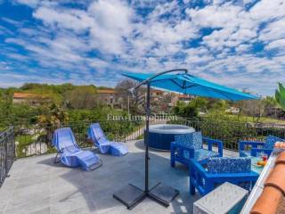 A semi-detached of approx. 80 m2 extends over the ground floor and first floor. At the entrance there is a terrace where there is a barbecue and a space for socializing. On the ground floor of the house there is a spacious living room and kitchen, bathroom and laundry room. There are two bedrooms and a bathroom on the first floor. Stairs lead to a large roof terrace of approx. 20 m2 with a jacuzzi and a space for socializing with a sea view.