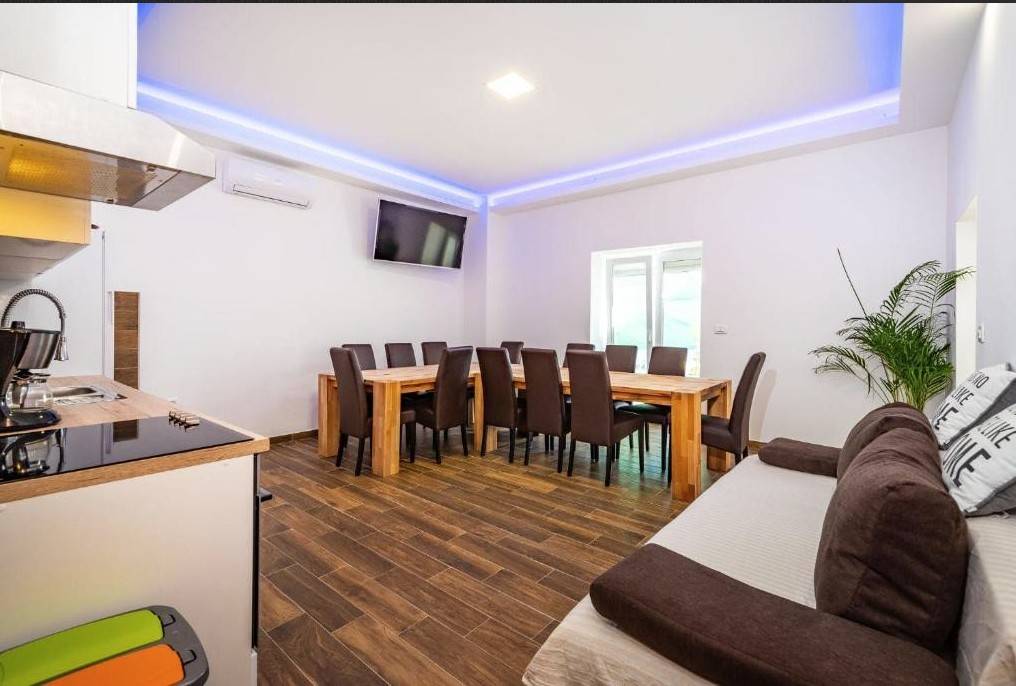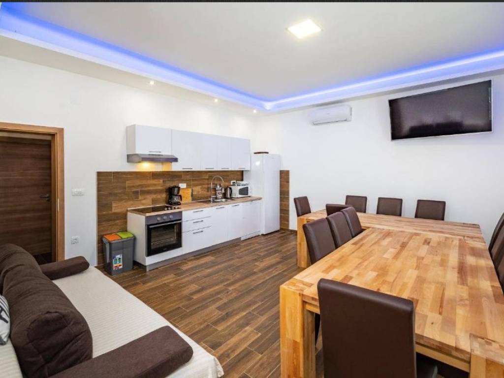 Prodaje se stan na jedinstvenoj lokaciji, 1. red do mora u mjestu Maslenica. Nalazi se u samom centru mjesta, prvi red do plaže, te ima veliku terasu pogodnu za sunčanje. Smješten u uvali u malom mirnom mjestu, pogled na maslenički most, idealno za odmor te za ljubitelje prirode, daleko od gužve. Stan se nalazi u prizemlju zgrade. Stan ima ukupno 130 m2 i sastoji se od hodnika, 3 kupaonice i 6 spavaćih soba od kojih dvije imaju vlastite kupaonice, kuhinje sa blagavaonom i dnevnim boravkom. Stan ima svoj vlastiti ulaz i terasu od 60 m2 na samom moru i maloj plaži. Mirna lokacija, a opet u neposrednoj blizini restorana, kafića, pošte, vrtića, škole, općine, trgovina... Stan se iznajmljuje u turizmu i ima popunjenost 150 noći godišnje. Sva dokumentacija uredna. Više informacija na upit.