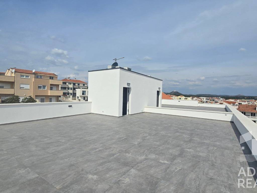 A spacious and modernly equipped two-bedroom apartment S3 is for sale in Vodice, located on the first floor of a smaller residential building with a total of four units, ensuring a high level of privacy and comfortable living.