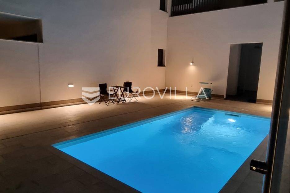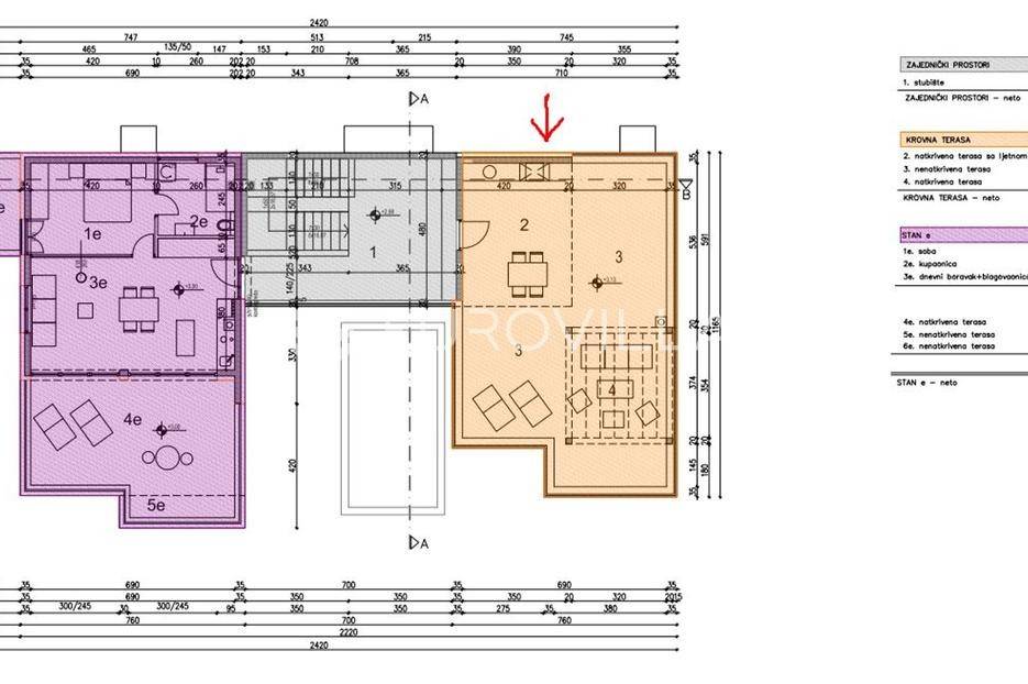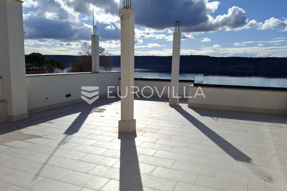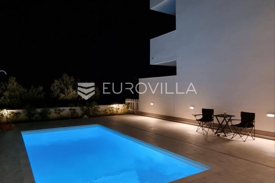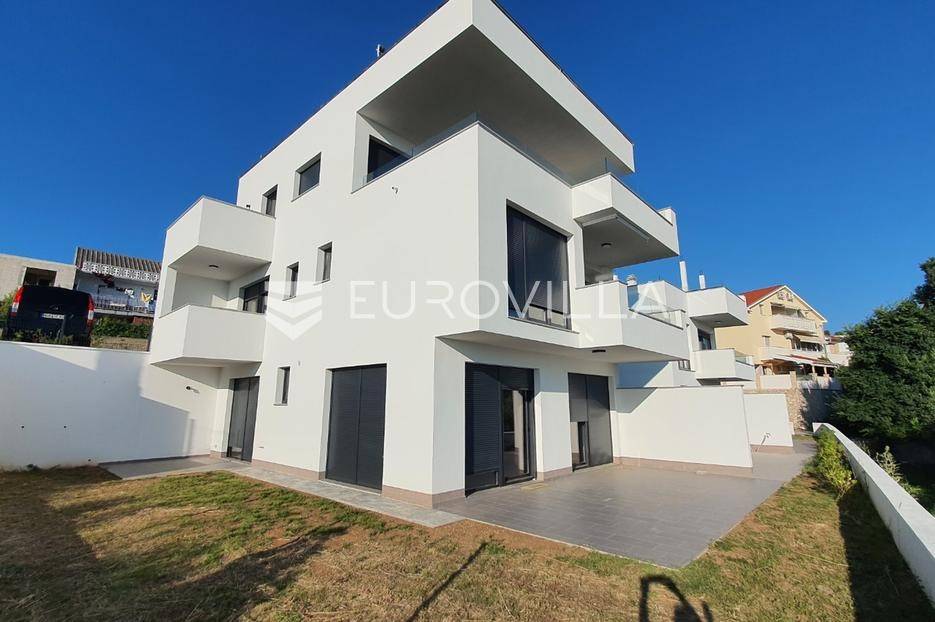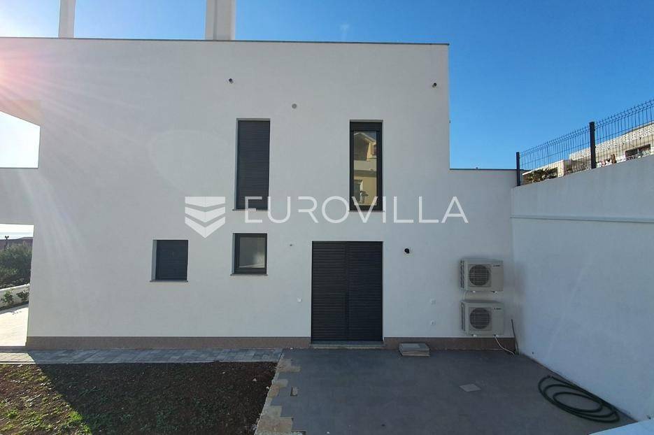 RTINA MIOČIĆI - Novogradnja 100 m od mora, otvoren pogled na more, bazenU Rtini Miočićima, na mirnoj lokaciji svega 100 m od plaže, prodaje se novogradnja građena i projektirana u armirano-betonskoj konstrukciji prema visokim protupotresnim i ostalim standardima.Objekt se sastoji od 5 stambenih jedinica raspoređenih u 2 objekta povezana zajedničkim hodnikom i stubištem. Zgrada je izgrađena na 3 etaže: suteren, prizemlje i kat. U suterenu se nalazi zajednički bazen, veliko sunčalište i terasa. Objekt je smješten na kaskadnom terenu, što svim etažama omogućuje otvoren pogled prema Ljubačkom zaljevu.Prodaje se Stan D, trosoban stan u prizemlju, ukupne korisne površine 73,96 m2. Stan se sastoji od dva zasebna ulaza, hodnika, dnevnog boravka, blagovaonice i kuhinje otvorenog tlocrta, dvije spavaće sobe, dvije kupaonice, natkrivene terase površine 5,95 m2 i lođe 5,85 m2. Stanu pripada vanjsko parkirno mjesto P3 površine 14,85 m2.Stan je opremljen Mitsubishi multi split klima uređajima s 3 unutarnje jedinice, podnim grijanjem putem toplinske pumpe te dimnjakom za mogućnost ugradnje kamina. Ugrađena je aluminijska antracit stolarija s električnim roletama i komarnicima, a u interijeru su postavljene keramičke pločice 1. klase, visoki sjaj mramor.Zahvaljujući dvama odvojenim ulazima, stan se može koristiti i kao dvije zasebne cjeline, odnosno kao studio apartman s natkrivenim balkonom i dvosoban stan s natkrivenom terasom. Oba dijela imaju pogled na more.Cijeli objekt za zajedničko grijanje vode koristi dizalicu topline i/ili solarne kolektore sa spremnikom od 1200 litara. Kao zajednički dio suvlasnicima pripada korištenje bazena, sunčališta, okoliša i parkirališta.Dodatno se prodaje i:Katna terasa korisne površine 70,24 m2, dijelom natkrivena, s posebnim zatvorenim ulazom i svim komunalnim priključcima. Ima velik potencijal za izvedbu penthouse apartmana s velikom terasom i stanom. Cijena: 125.000,00€Parkirno mjesto P1 - 10,25 m2. Cijena: 8.100,00€Parkirno mjesto P2 - 12,30 m2. Cijena: 9.500,00€Parkirno mjesto P6 - 13,50 m2. Cijena: 10.500,00€Parkirno mjesto P8 - 14,38 m2. Cijena: 11.300,00€U cijenu je uključen PDV!Rtina je udaljena oko 15 km od izlaza Posedarje, oko 13 km od autoceste A1, a od Zagreba svega oko 2 sata vožnje. U blizini se nalaze 5 nacionalnih parkova, 3 parka prirode te Zadar, Šibenik, Skradin i otok Pag.... Više na eurovilla.hr, ID: 851166