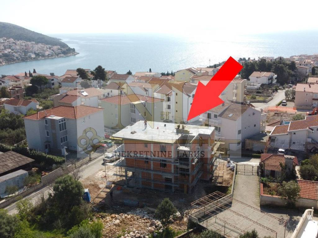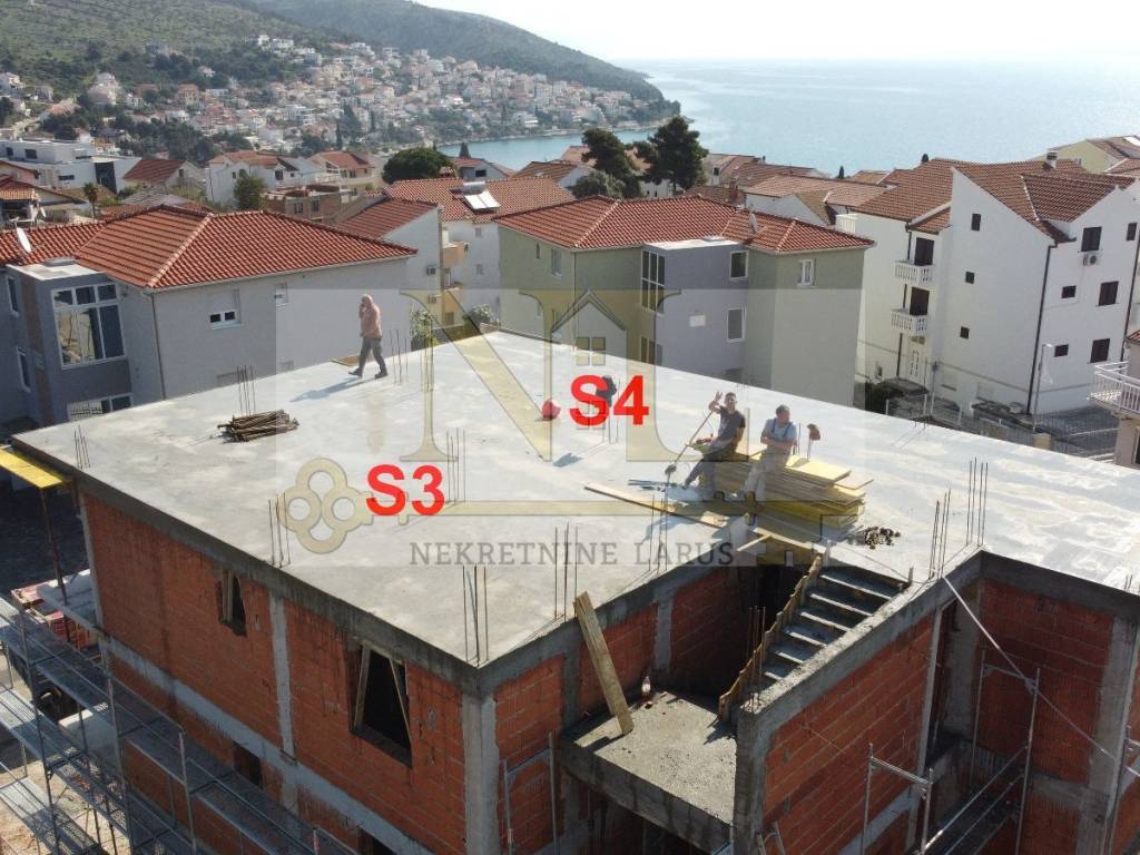 We are selling a penthouse apartment S3 with a roof terrace on the second floor of a smaller residential building in Okrug Gornji. The building is located in a central location in Okrug Gornji, so it has easy and quick access to both sides of the island, and the sea and the beach are about 500 meters away. Penthouse apartment S3 with a roof terrace, the second floor consists of two bedrooms, two bathrooms, a kitchen with a living room and a balcony and the associated roof terrace. The apartment has one outdoor parking space. Surfaces: - the interior space of the apartment is 54.56 m2 - covered balcony 15 m2 - roof terrace 83.39 m2 Total: 152.95 m2