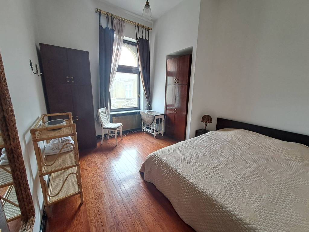 This 3-bedroom apartment of 110 sq m is located in the heart of Zagreb just 500 meters away from the Ban Jelacic square, close to markets, caffes, tram stop ect. The apartment is placed on the 3rd floor in a building without an elevator, it consists of an entrance, hallway, 1 large bedroom, 2 good sizes bedrooms, 1 bathroom with shower, separate toilet, living room with kitchen and dining. This property has gas central heating, AC, Internet, it is fully furnished and equipped. Agency fee 1 rent.