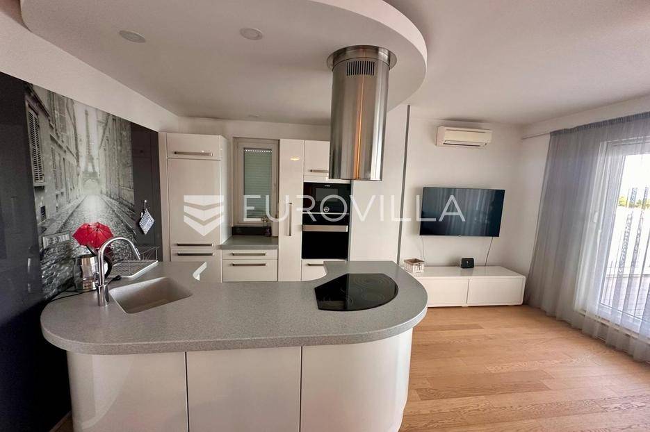 Split, Žnjan, moderan penthouse koji spaja eleganciju, udobnost i lijep pogled na more. Smješten u suvremenoj zgradi s liftom, idealan je za one koji traže vrhunski dom nadomak svih bitnih sadržaja i prekrasnih plaža.Ovaj prostrani penthouse, neto korisne površine 94,64 m2, pametno je dizajniran za maksimalnu funkcionalnost. Zatvoreni dio od 69 m2 obuhvaća ulazni hodnik, otvoreni koncept dnevnog boravka s blagovaonicom i modernom kuhinjom. Južna orijentacija osigurava obilje prirodnog svjetla. Dvije spavaće sobe i udobna kupaonica pružaju privatnost i komfor.Impresivne vanjske površine ističu ovaj penthouse. Pripadaju mu dvije terase: prostrana od 42 m2 i intimnija od 8 m2. Idealan ambijent za zabavu i relaksaciju.Dodatnu vrijednost ovom penthouseu daju dva pripadajuća parkirna mjesta u garaži.Stan se prodaje kompletno namješten, spreman za useljenje. Pažljivo odabrani detalji, od modernog namještaja do visokokvalitetnih završnih obrada, stvaraju osjećaj luksuza i udobnosti.Lokacija na Žnjanu pruža neusporedivu kvalitetu života. U neposrednoj blizini su prekrasne šljunčane plaže, slikovita šetnica te raznovrsni restorani i kafići. Svi bitni sadržaji poput supermarketa, škole i javnog prijevoza udaljeni su tek nekoliko minuta, čineći svakodnevni život praktičnim. Žnjan je poznat po mirnoj atmosferi i brzom pristupu centru grada.Ovaj penthouse predstavlja rijetku priliku za kupnju iznimne nekretnine koja nudi savršen spoj luksuza, funkcionalnosti i prestižne lokacije.Za sve dodatne informacije i dogovor oko razgledavanja, slobodno nas kontaktirajte.... Više na eurovilla.hr, ID: 567169