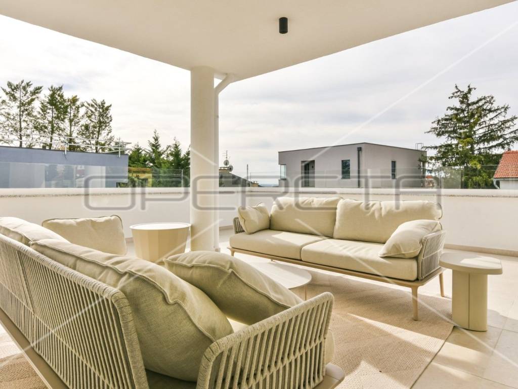 Na prodaju je prostran dvoetažni stan koji nudi udoban i moderan životni prostor. Na donjoj etaži nalazi se prostrani dnevni boravak povezan s kuhinjom i blagovaonicom, stvarajući idealan prostor za druženje i zabavu. Velika terasa pruža dodatni prostor za opuštanje i uživanje na otvorenom. Tu su i mali toalet i vešeraj. Na gornjoj etaži nalazi se prostrana master spavaća soba s vlastitom kupaonicom i walk-in ormarom. Tu su još dvije spavaće sobe i još jedna kupaonica, a sve sobe imaju pristup balkonu. Ovaj stan savršen je dom za obiteljski život. Stanu pripada garaža od 18m2 i spremište od 4 m2. Idealna nekretnina za osobu koja bi htjela živjeti u miru, a svega par minuta od centra grada.