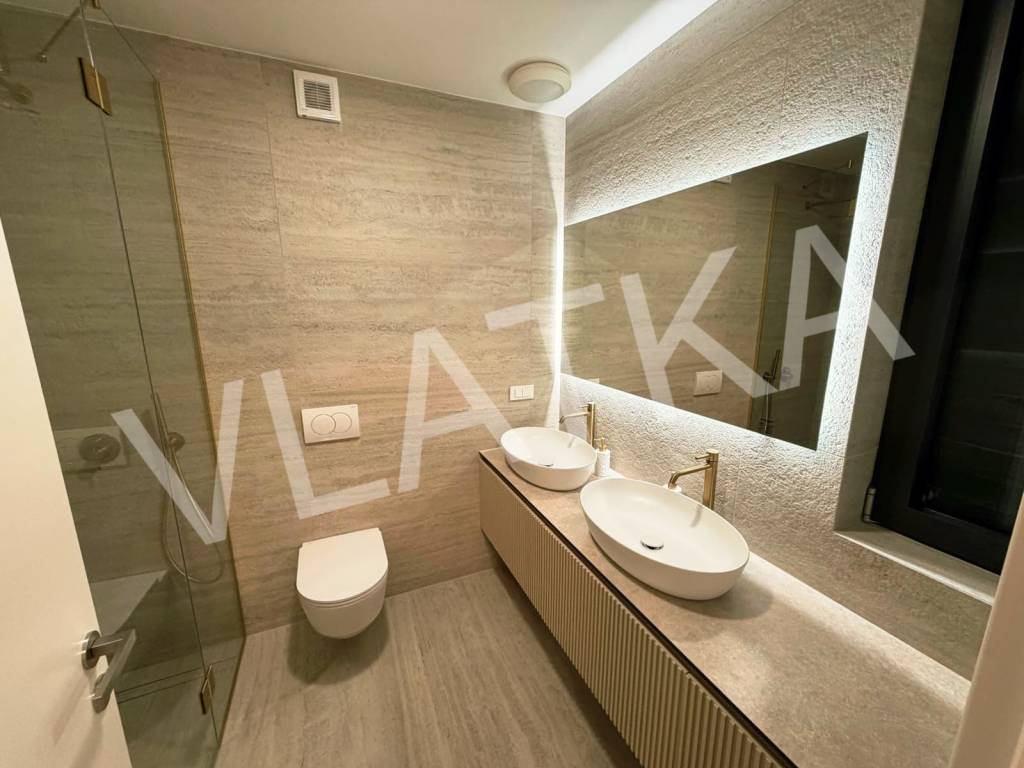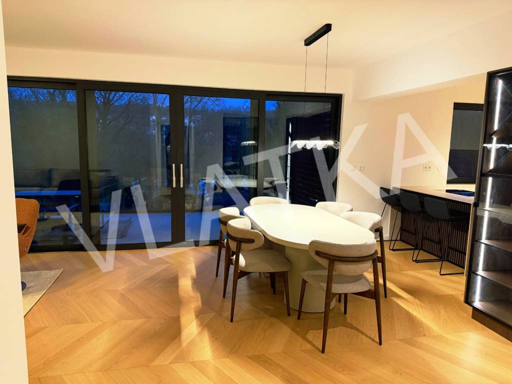 È composto da: • Ingresso • Ampio soggiorno collegato a una cucina di design e zona pranzo • Camera da letto principale (master) con bagno privato (en-suite) • Seconda camera da letto (ideale come camera per bambini o ufficio) • Bagno per gli ospiti • Bellissima terrazza coperta (23 m2) con vista sul bosco di Maksimir