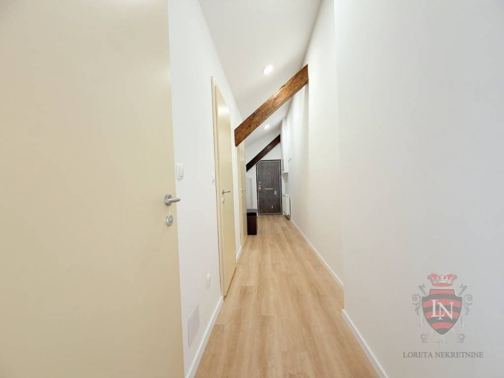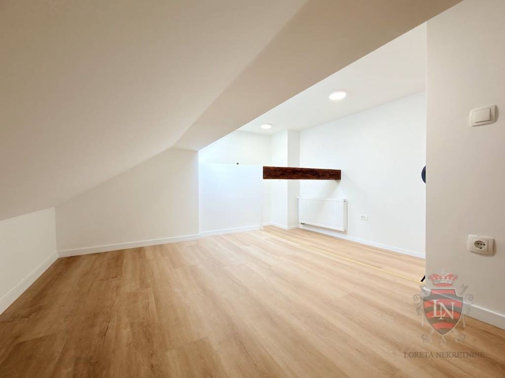 Stan se nalazi u potkrovlju, u potpunosti je preuređen te nudi 75 m² funkcionalnog i reprezentativnog prostora, idealnog za uredske i poslovne djelatnosti.