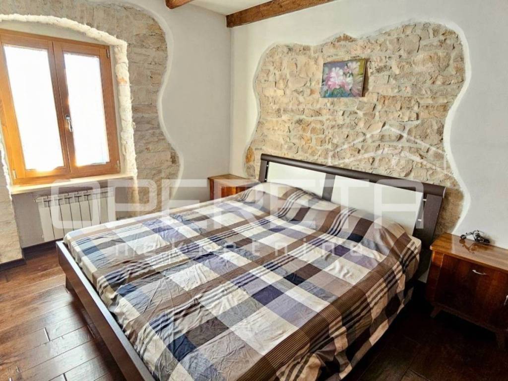 Al piano terra si trovano la cucina con accesso al giardino, il soggiorno con camino e il bagno. Al piano superiore sono situate due camere da letto, di cui una con accesso al balcone.