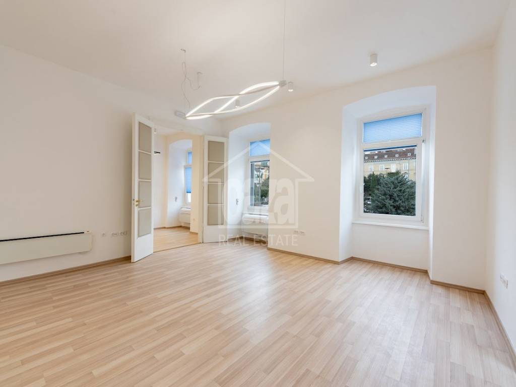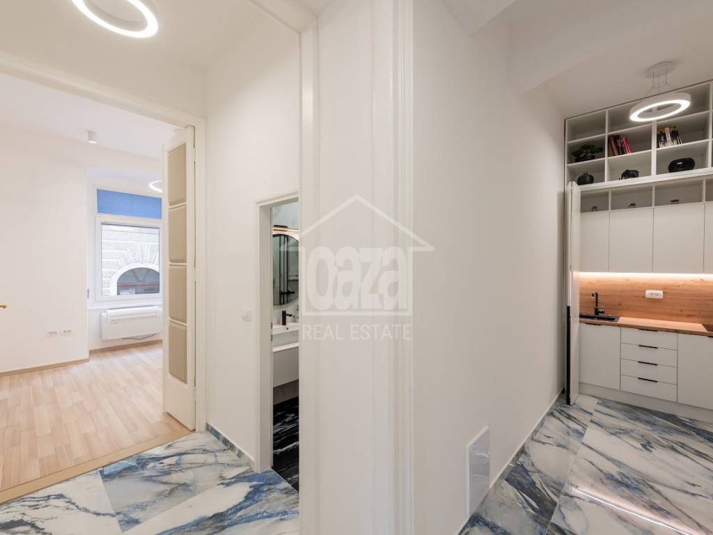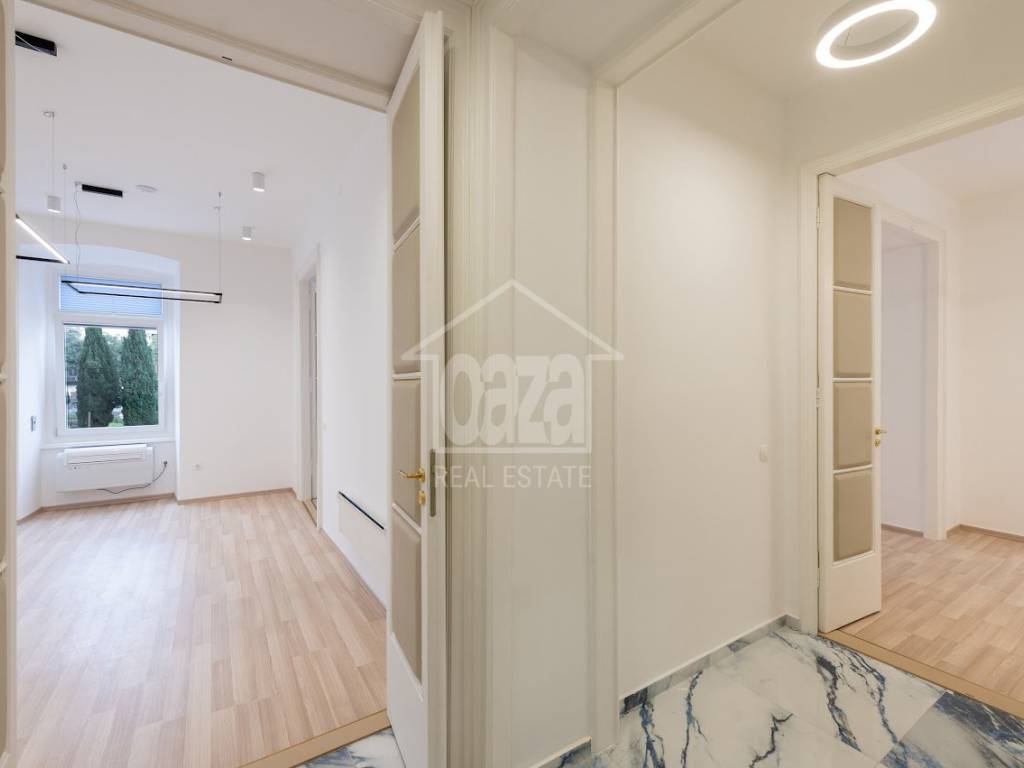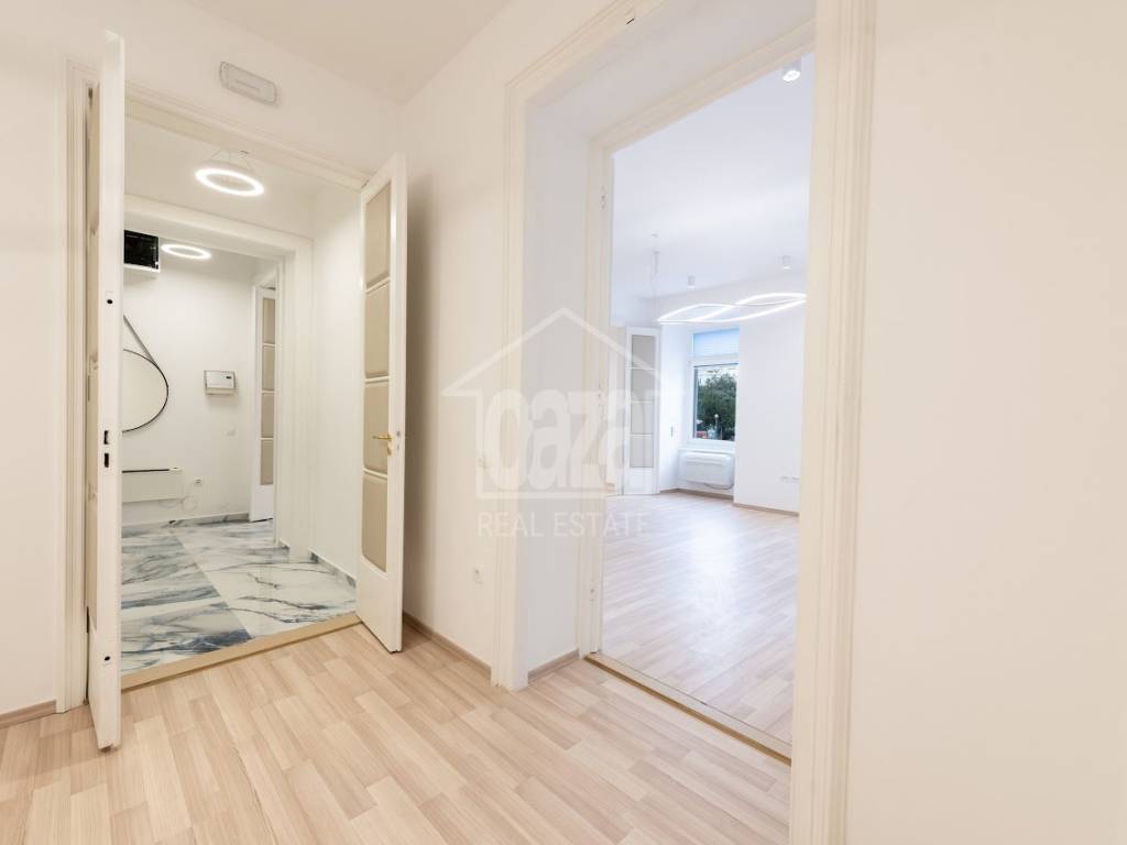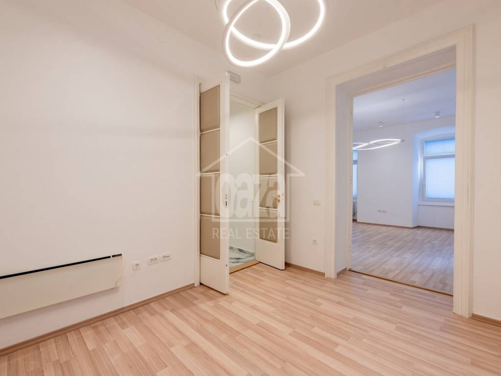 Iznajmljujemo ekskluzivan poslovni prostor od 87,02 m2 u očuvanoj austrougarskoj zgradi, na vrhunskoj lokaciji u samom centru Rijeke, odmah uz HNK Ivan pl. Zajc. Prostor se ističe visokim stropovima, obiljem prirodne svjetlosti te otvorenim pogledom na kazališni trg i fontanu, što mu daje dodatnu dozu reprezentativnosti i prestiža. Idealan je za djelatnosti koje traže ozbiljan poslovni dojam i atraktivnu lokaciju.