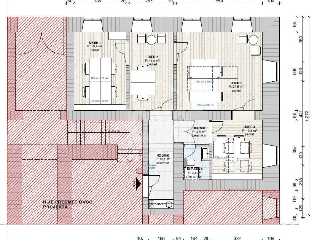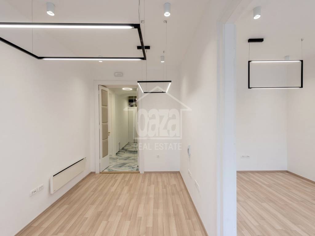 Oprema i posebnosti prostora: • kvalitetan uredski namještaj (prilagođen modernom poslovanju) • luksuzno uređena kupaonica s dizajnerskim detaljima • nova mrežna instalacija s 32 mrežna priključka • dvostruki optički kabel (mogućnost korištenja dva pružatelja interneta) • nove instalacije struje s ukupno 56 utičnica • dizajnerska LED rasvjeta u svim prostorijama • klima uređaj u svakoj prostoriji (grijanje/hlađenje + mobilna kontrola) • norveški radijatori kao dodatna opcija grijanja