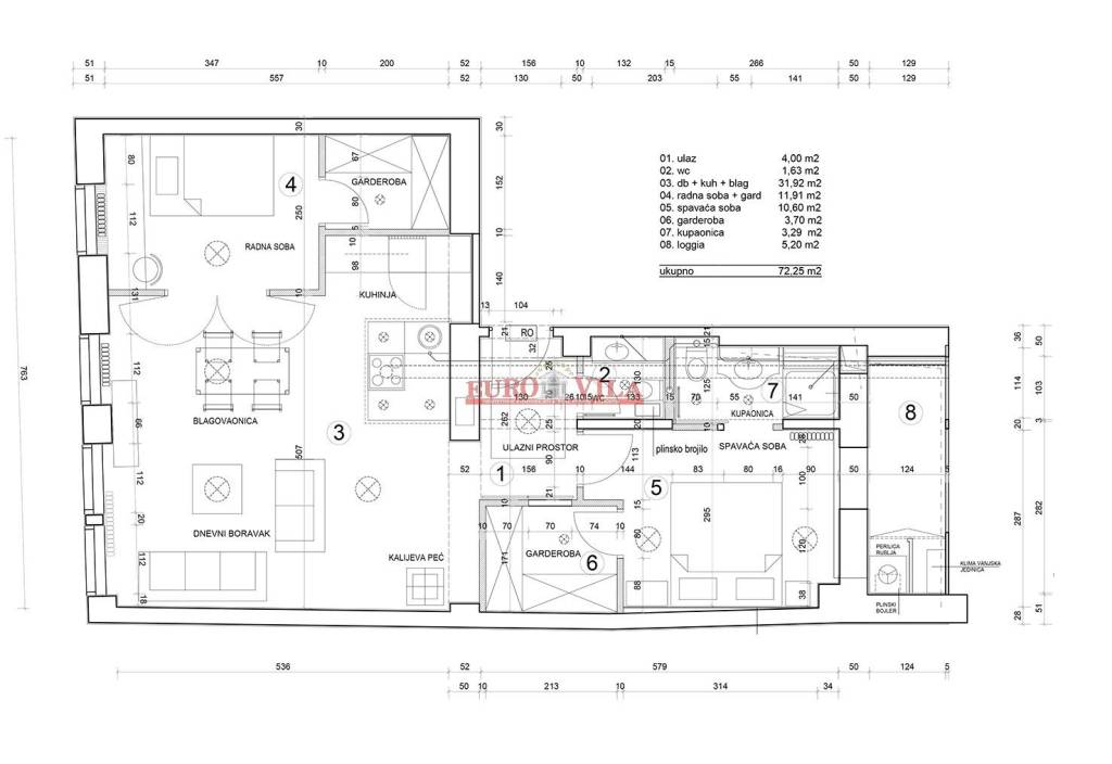 Ilica, u neposrednoj blizini Trga Bana Jelačića (100m), prekrasan uređen i potpuno namješten trosoban stan na II katu, površine 66m2. Kompletno adaptiran (betonska deka, nova vanjska izo stolarija, centralno etažno plinsko grijanje, klimatizirane sve prostorije, protuprovalna vrata). Potpuno namješten i opremljen. Dvije spavaće sobe sa garderobama, kupaonica s tušom, wc, zatvorena loggia, boravak sa kuhinjom i blagovaonicom.... Više na eurovilla.hr, ID: 811838
